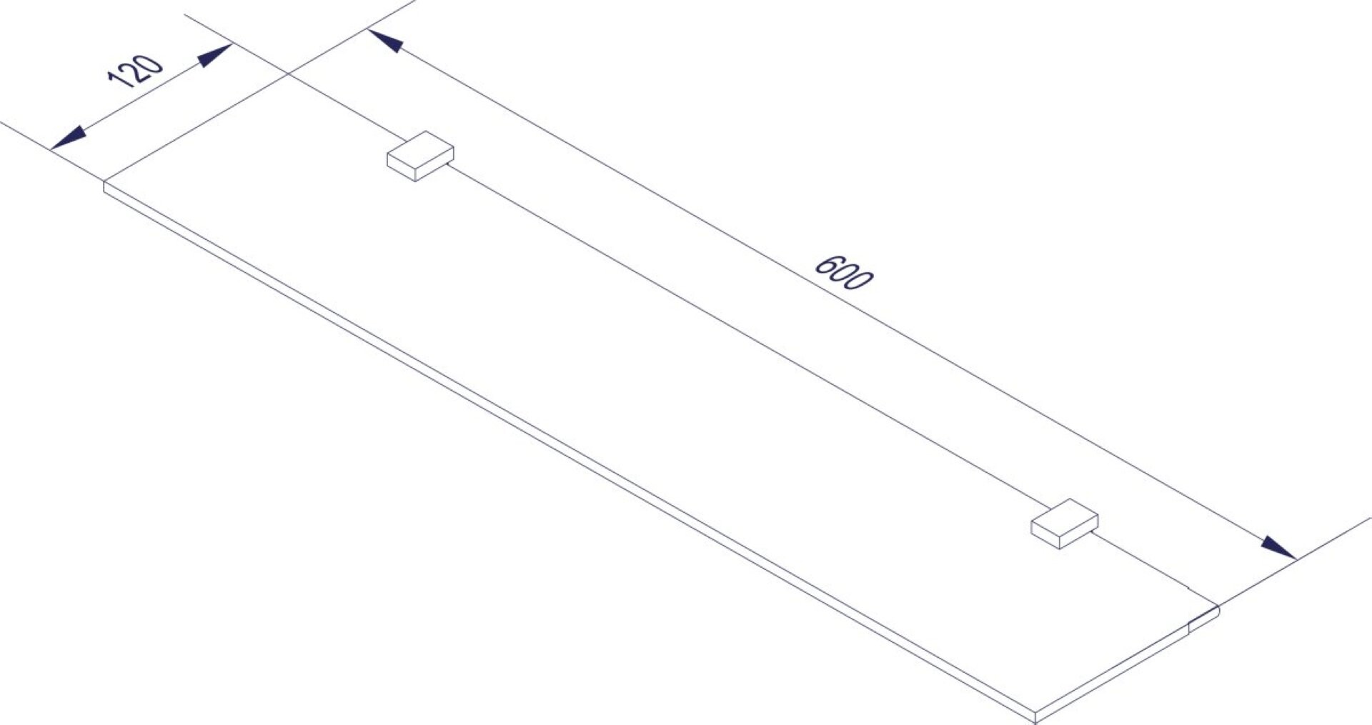- Maße: 60 cm Breite, 12 cm Tiefe, Glasstärke 6 mm