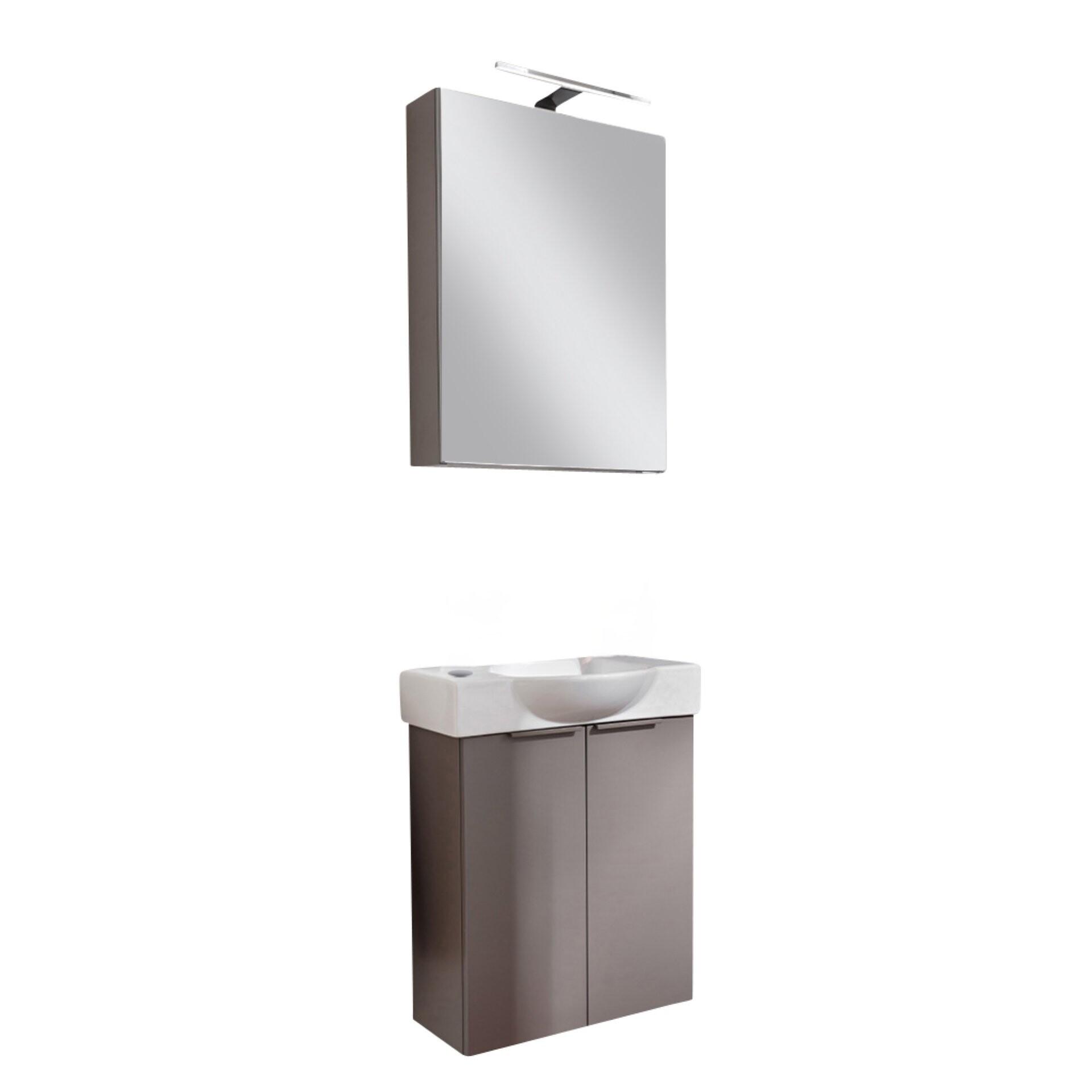 Fackelmann SBC B.PARIS Gäste WC Waschtisch Set mit Spiegelschrank 55 cm breit, Grau, Türanschlag links