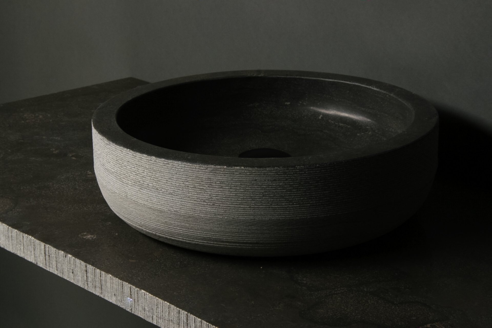 Das runde Natursteinbecken VERONA von Forzalaqua überzeugt mit einer exklusiven Ausstrahlung. Dank der Schönheit des reinen Natursteins und der besonderen Verarbeitung lässt es Dich jeden Morgen aufs Neue die Zeit im Badezimmer vergessen. Das moderne schwarze Aufsatzbecken wird mit viel Liebe zum Detail in Handarbeit aus einem einzelnen Stück Naturstein hergestellt. Es besteht aus gemeißeltem Bluestone, wodurch die Front einen edlen Grauton aufweist, und ist ohne Hahnloch. Dadurch eignet sich das Natursteinbecken hervorragend für Wandarmaturen. Forzalaqua-Waschtische zeichnen sich durch ihre ebenso robuste wie elegante Ausstrahlung aus. Auf Grund seiner Größe eignet sich dieses Becken auch optimal für kleine Badezimmer und Gäste-WCs.