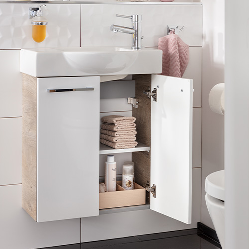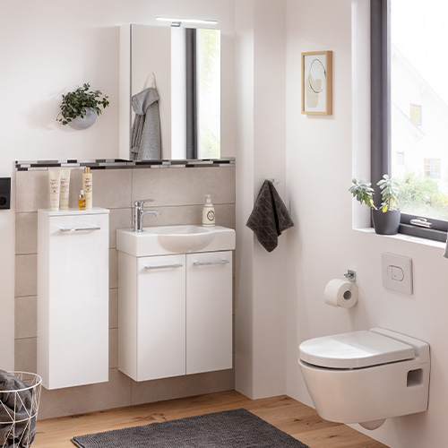 Die neue Small Bathroom Collection (SBC) von Fackelmann bietet Dir vielfältige Möglichkeiten für Dein Gäste-Bad. Die vormontierten Badmöbel erleichtern Dir die Installation zuhause und sind in den Breiten 45cm und 55cm verfügbar.