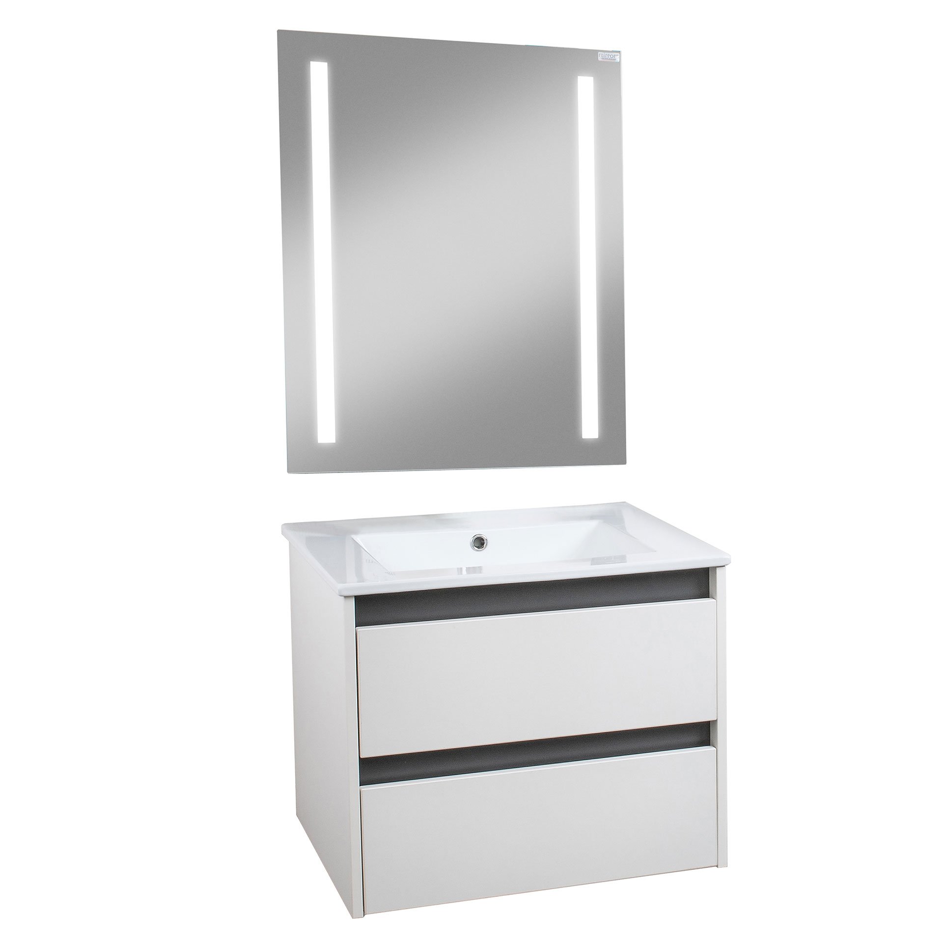 BadeDu BYK Badmöbelset 3-teilig 60 cm, Weiß/Braun/Anthrazit inkl. LED-Spiegel