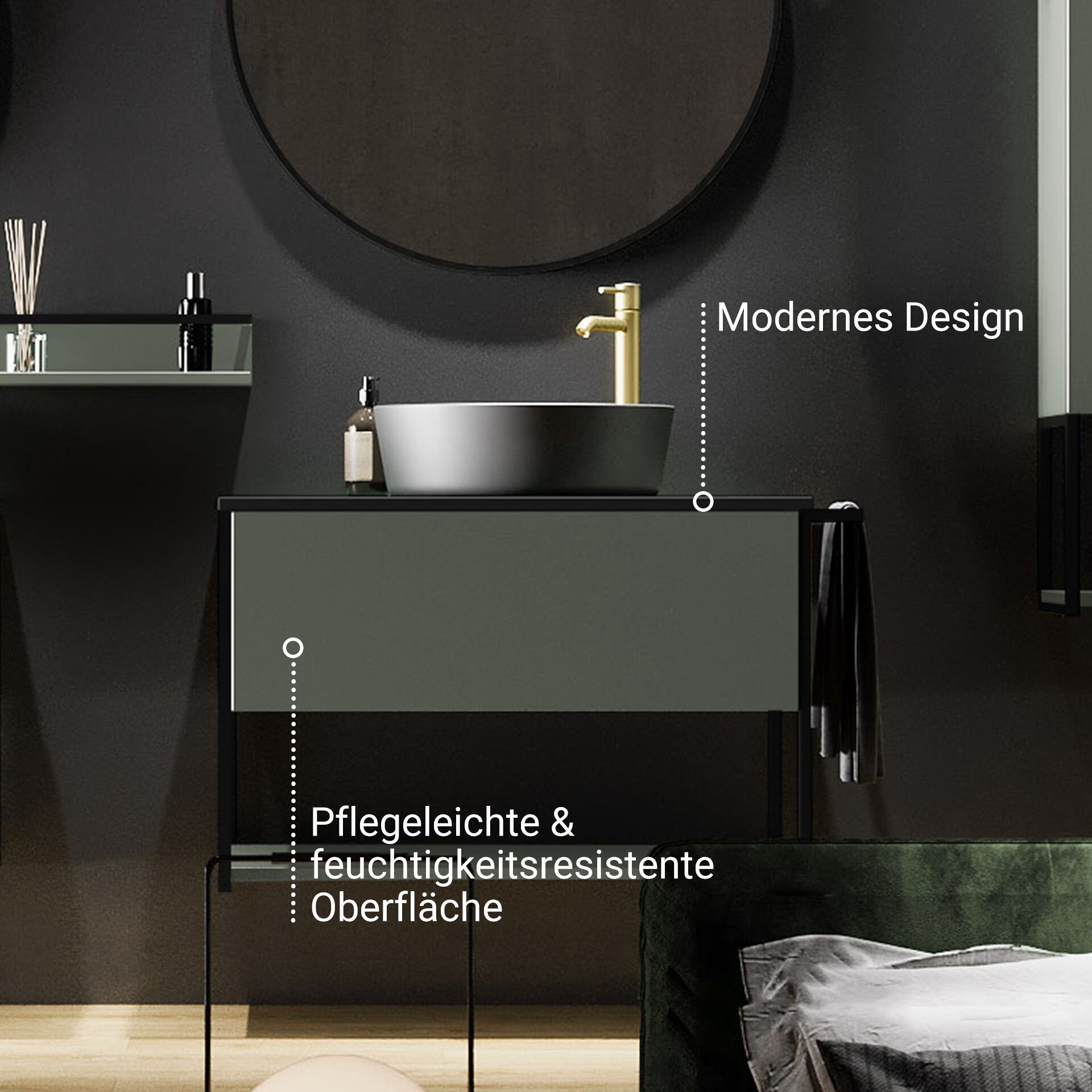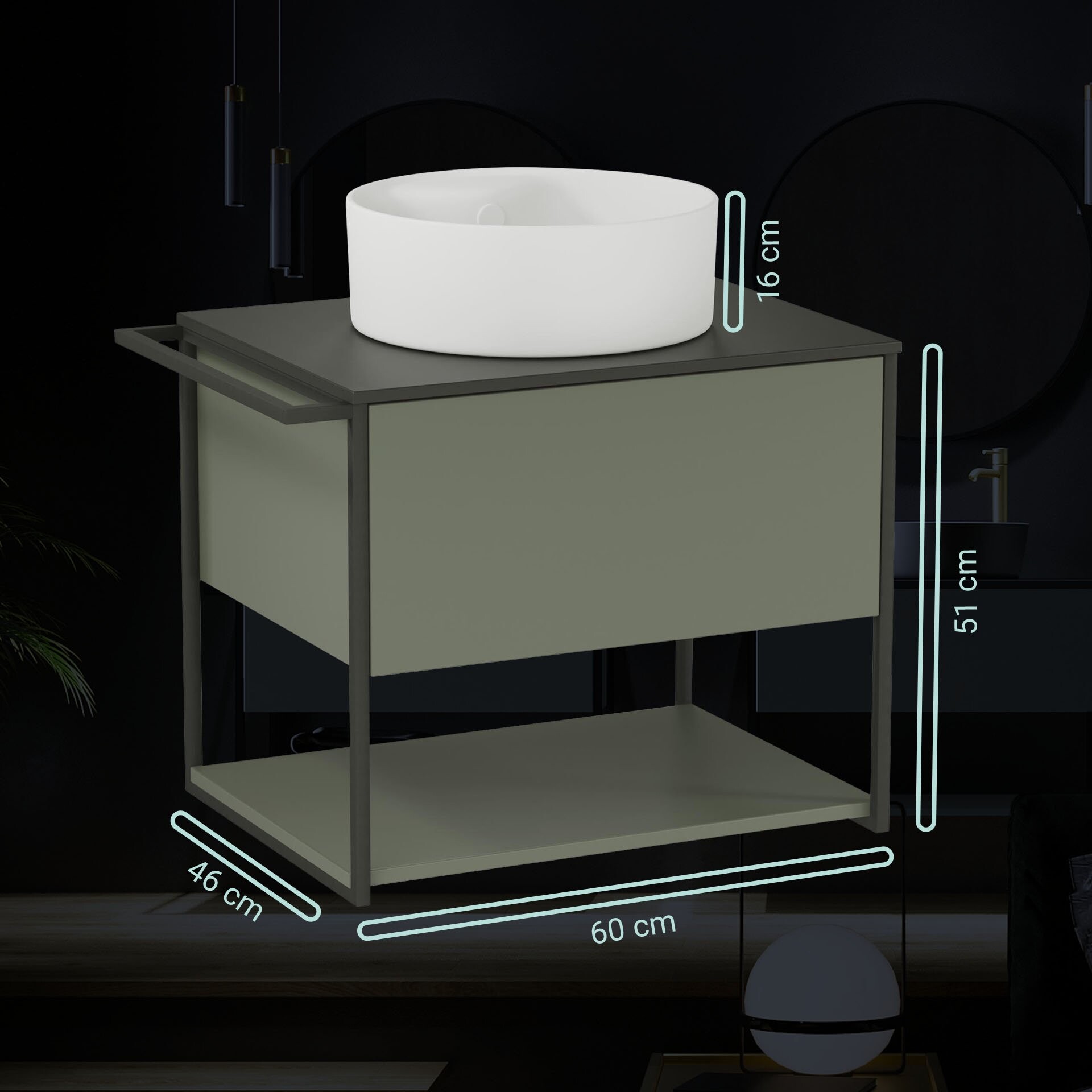 BadeDu DUNA Waschbecken mit Unterschrank 60 cm breit, Grün, Aufsatzwaschbecken Keramik Weiß, Waschtischplatte Anthrazit