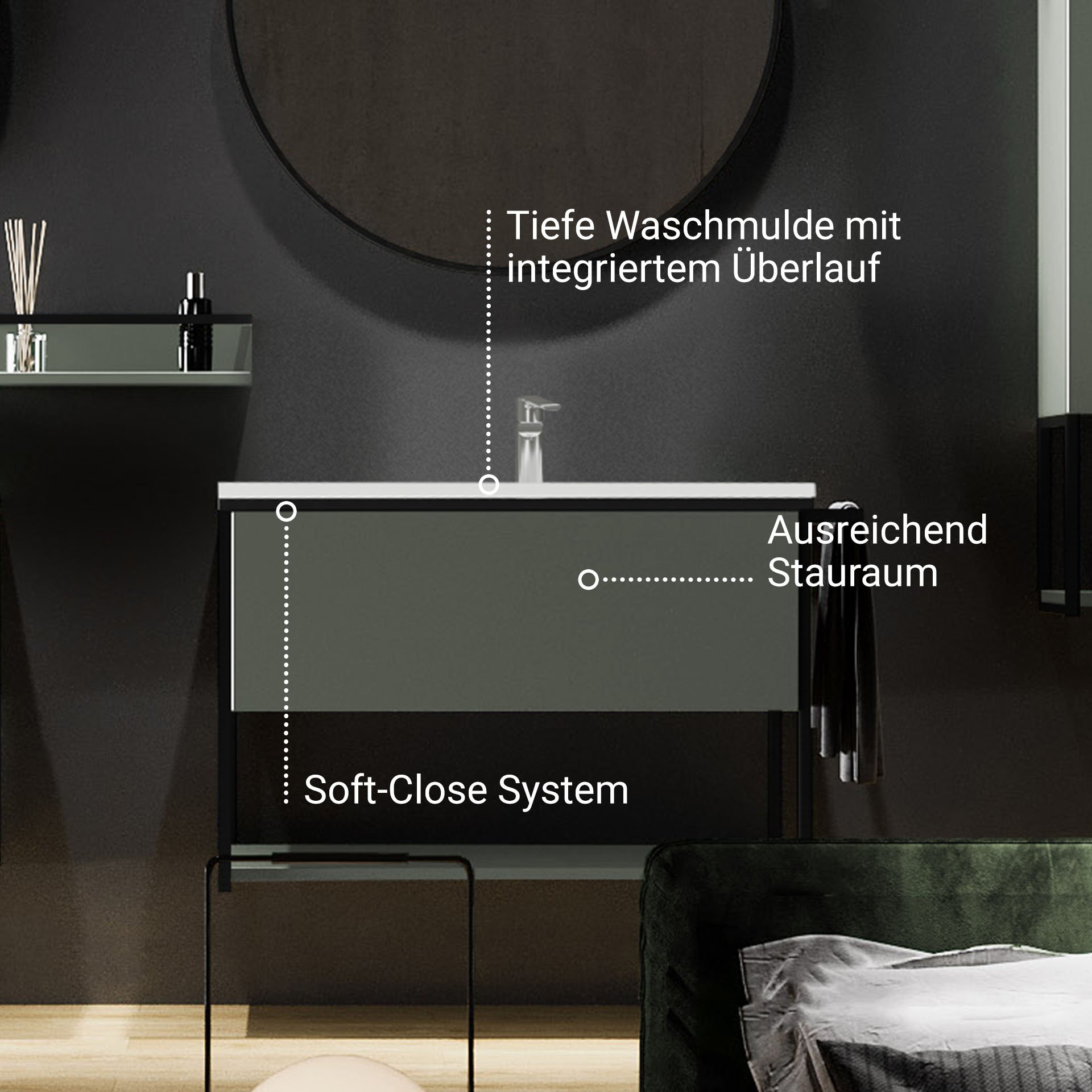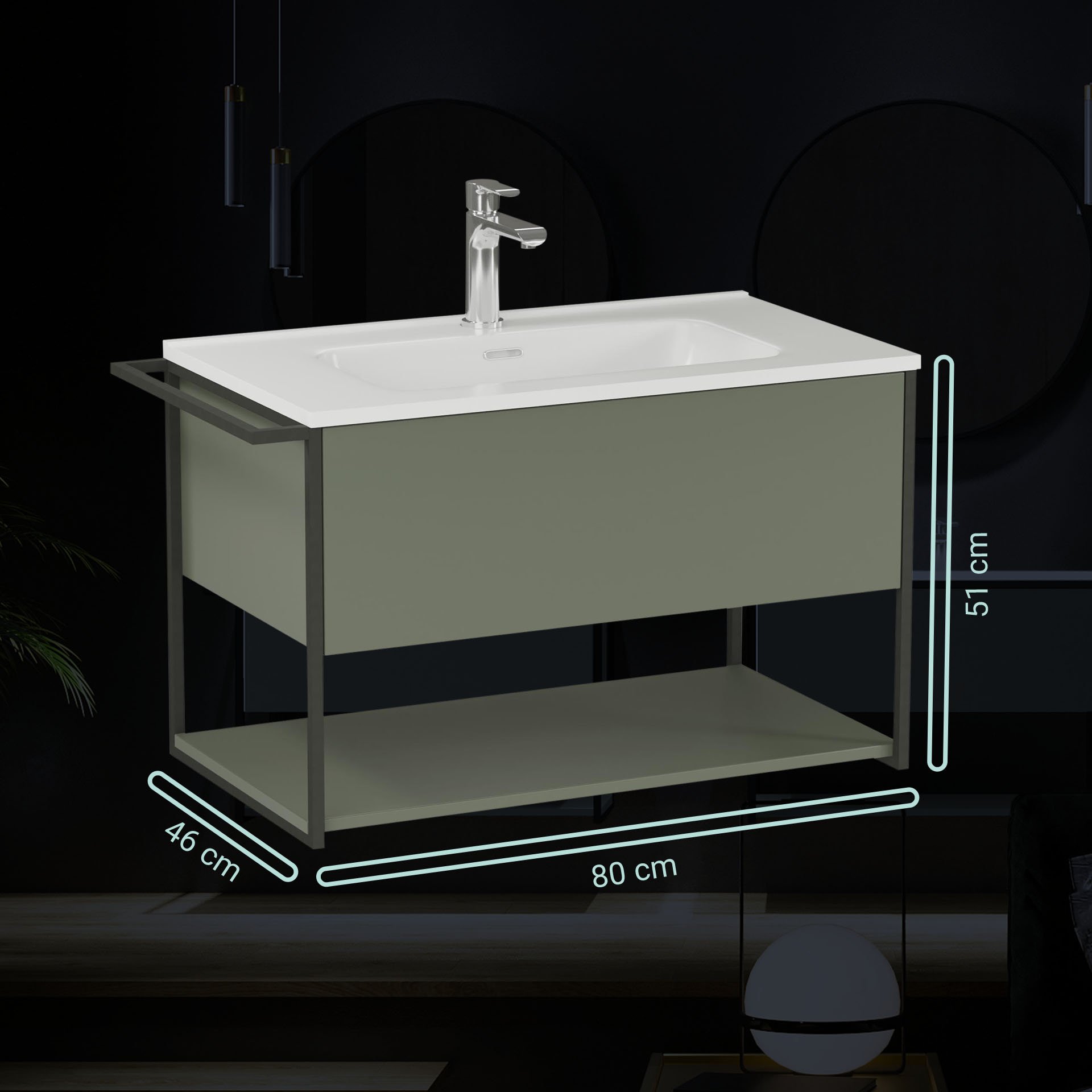 BadeDu DUNA Waschbecken mit Unterschrank 80 cm breit, Grün, Waschbecken Keramik Weiß