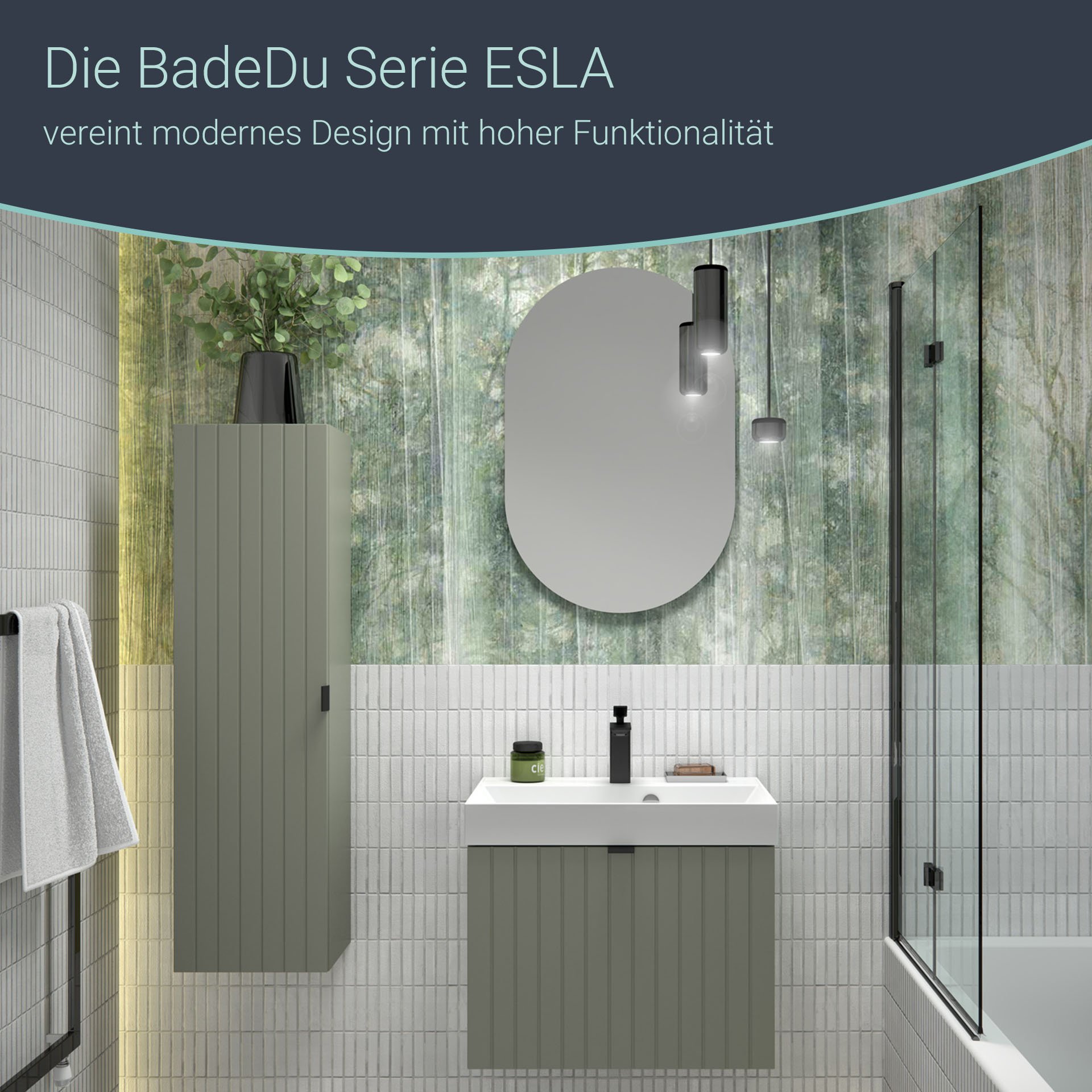 Du liebst den Industrial Style. Du bist trendy und stilbewusst? Dann hast Du mit dem grünen Hochschrank aus der Serie ESLA von BadeDu genau das richtige Objekt für Dich gefunden. Dieser 31 cm breite Hochschrank mit seiner cleveren Aufteilung im Innenraum bietet Dir perfekten Stauraum. Mit seinen vier Ablagefächern bringst Du Struktur in Deine Badaccessoires und hast alles immer griffbereit. Es herrscht Ordnung im Bad. Alles ist stilvoll aufgeräumt. Mit dem außergewöhnlichen Farbspiel von natürlichem Grün und der senkrechten Rillenstruktur in der Front, bringt der Badschrank den skandinavischen Stil in Dein Bad. Durch das moderne Rillen-Design der Schranktür erhältst Du eine einzigartige Haptik und eine beruhigende Optik in Deinem Badezimmer. Der BADEDU ESLA Hochschrank 31 cm breit, Grün ist für alle Individualisten geeignet, die einen funktionelles und zugleich stilvolles Badezimmer planen.