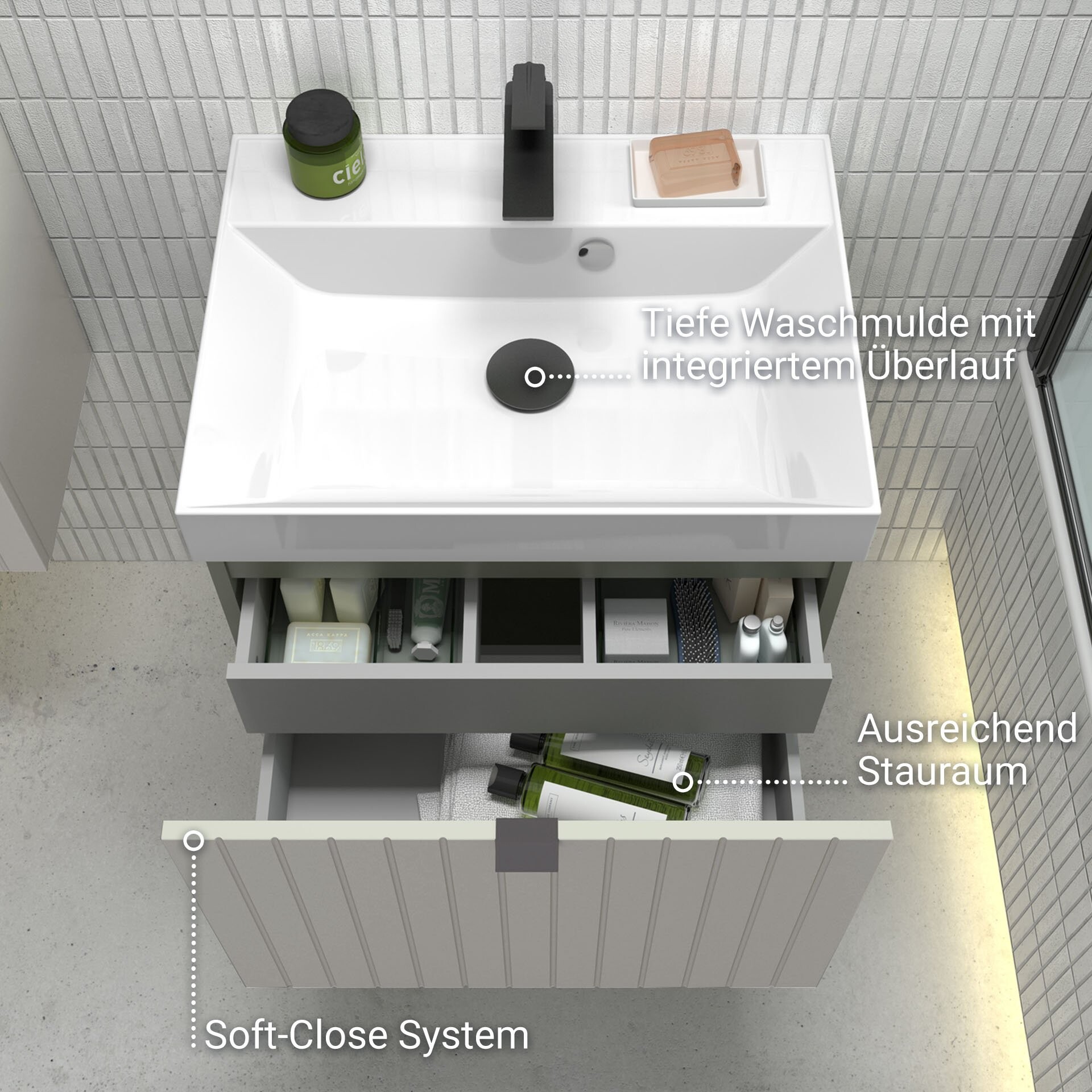 - Besonderheit: tiefe Waschmulde