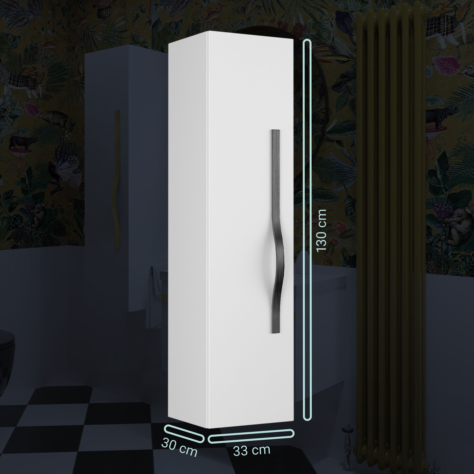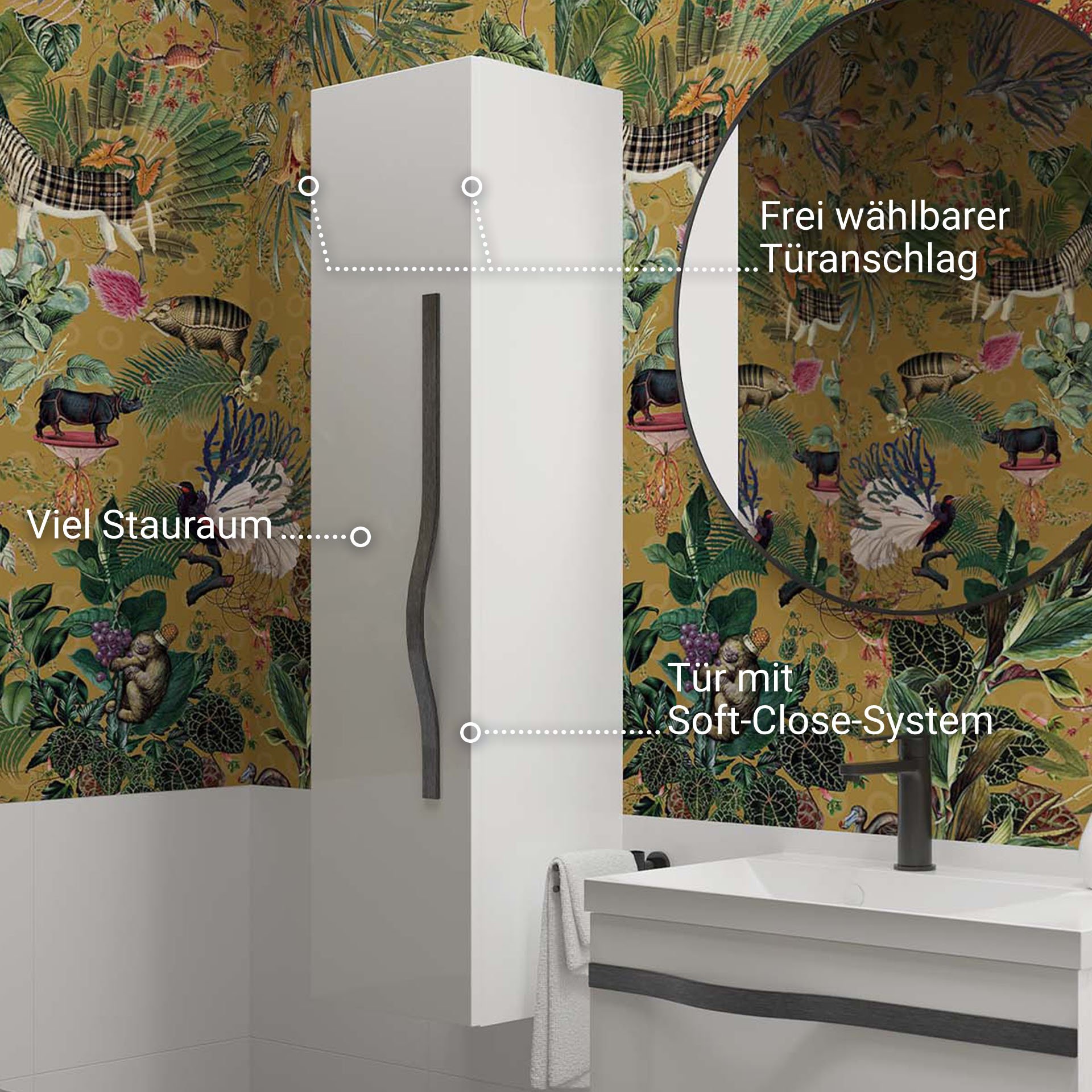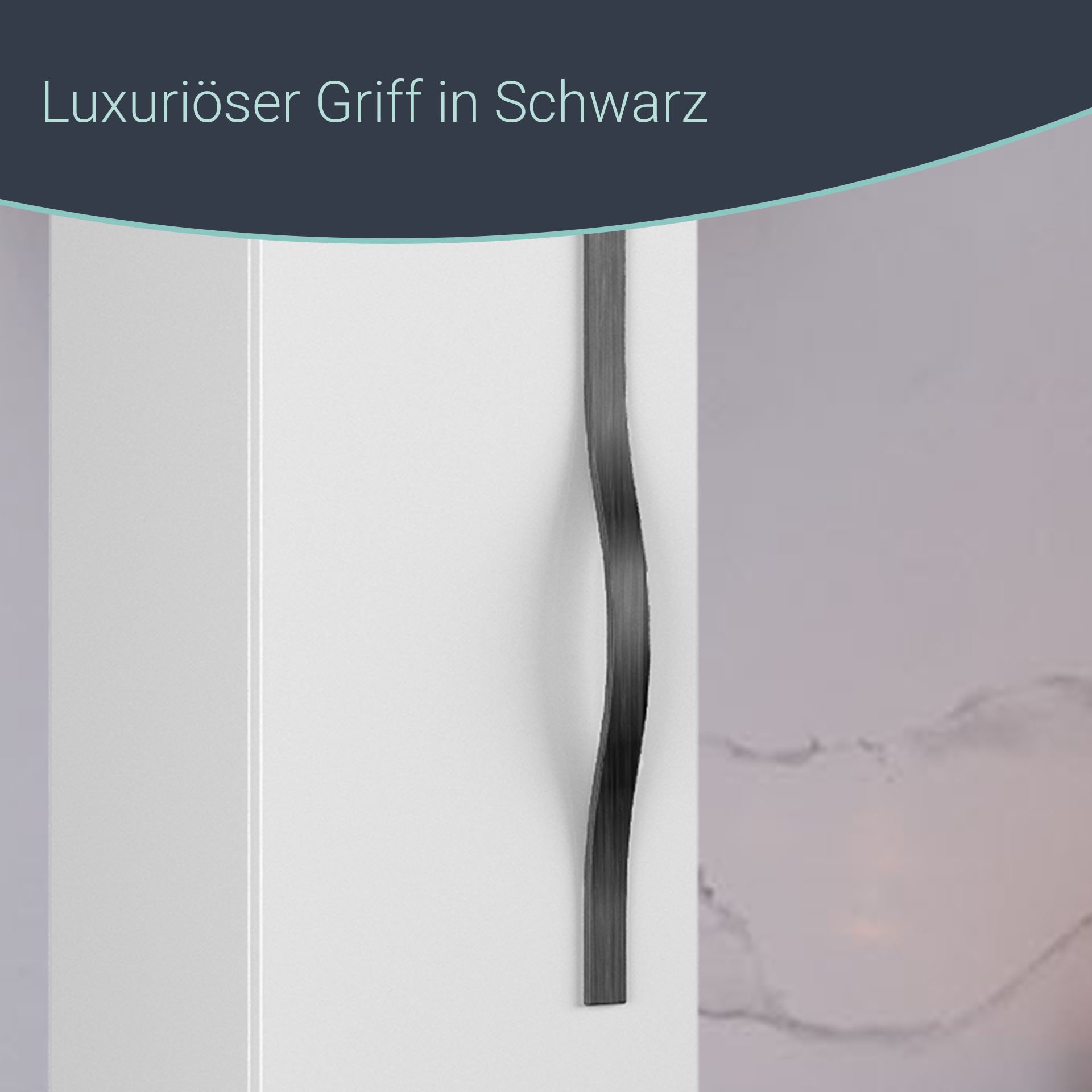 BadeDu FILS Hochschrank 33 cm breit, Weiß, Griff Schwarz
