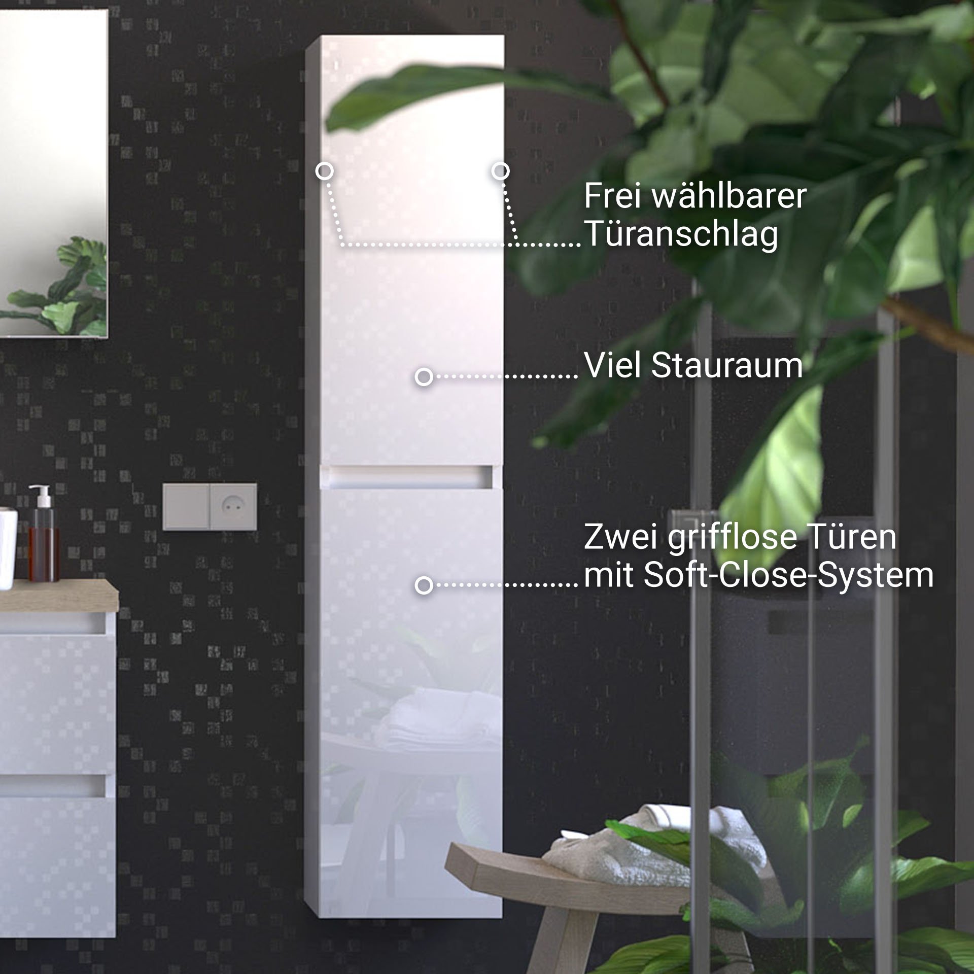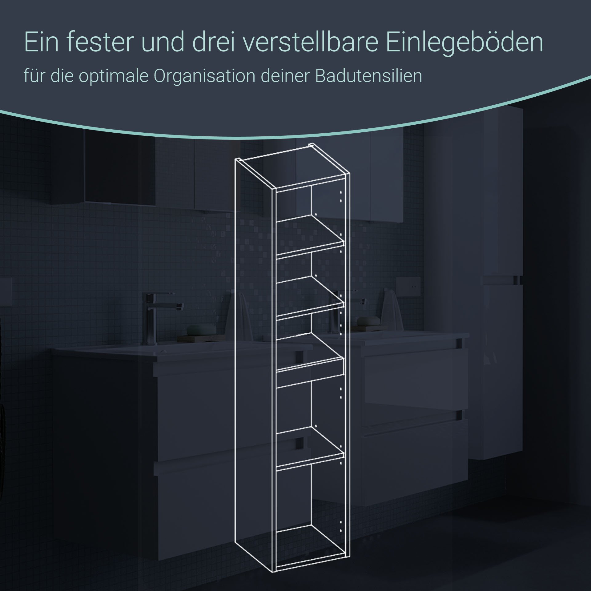 - Ausstattung: 3 verstellbare Einlegeböden, 1 fester Einlegeboden, Soft-Close-System