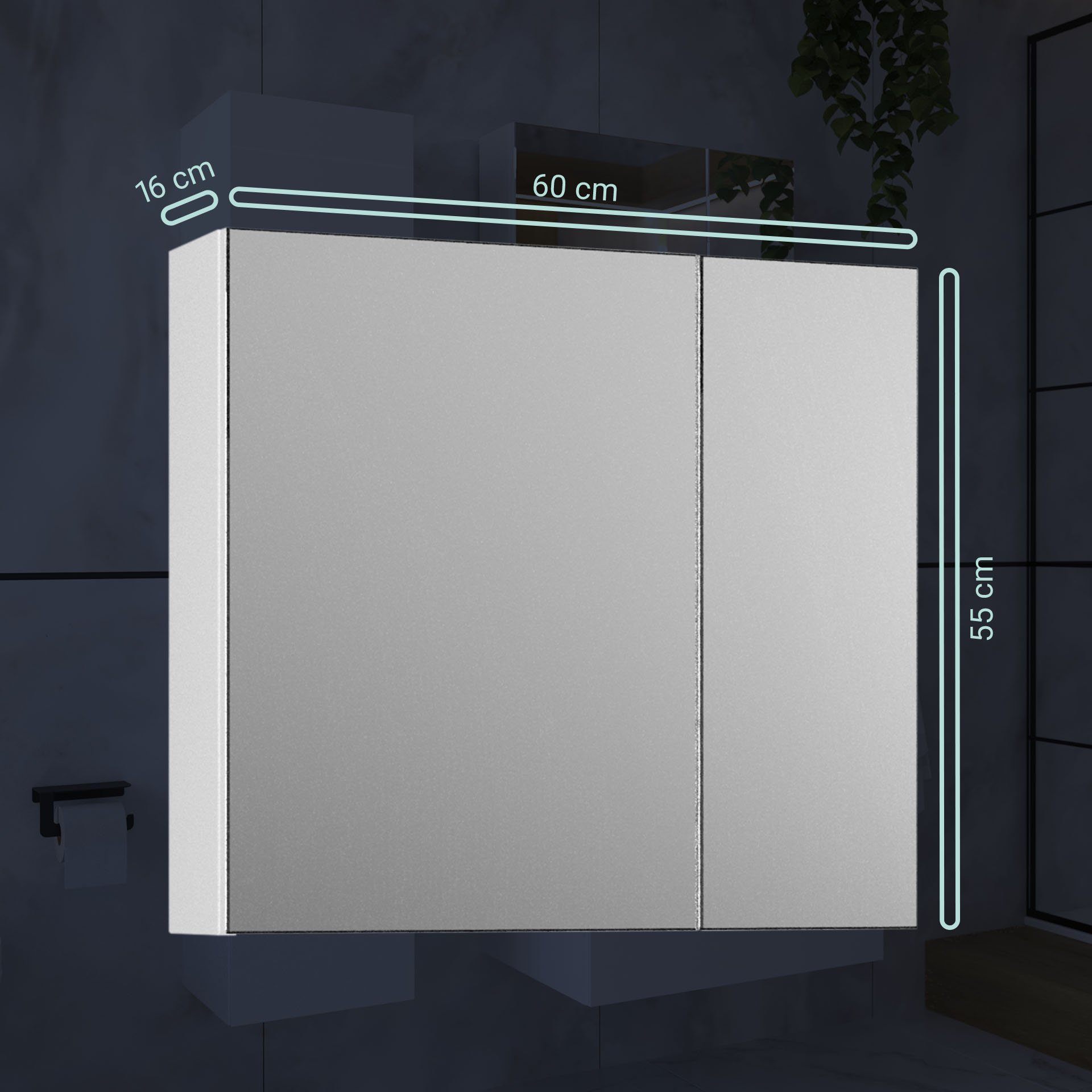 - Maße: 60 cm Breite, 55 cm Höhe und 15,4 cm Tiefe