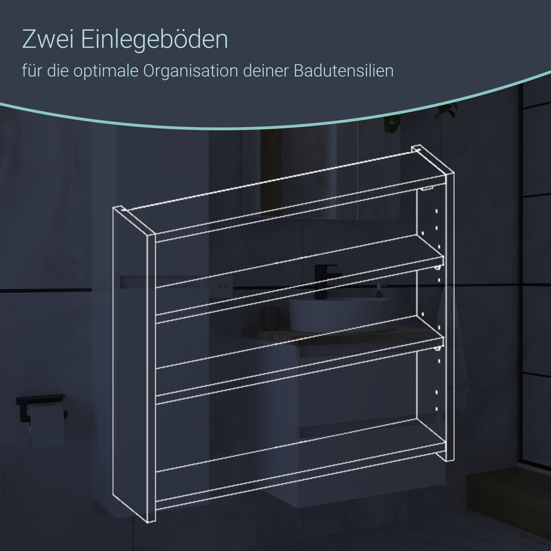 - Ausstattung: Soft-Close-System, 2 Einlegeböden
