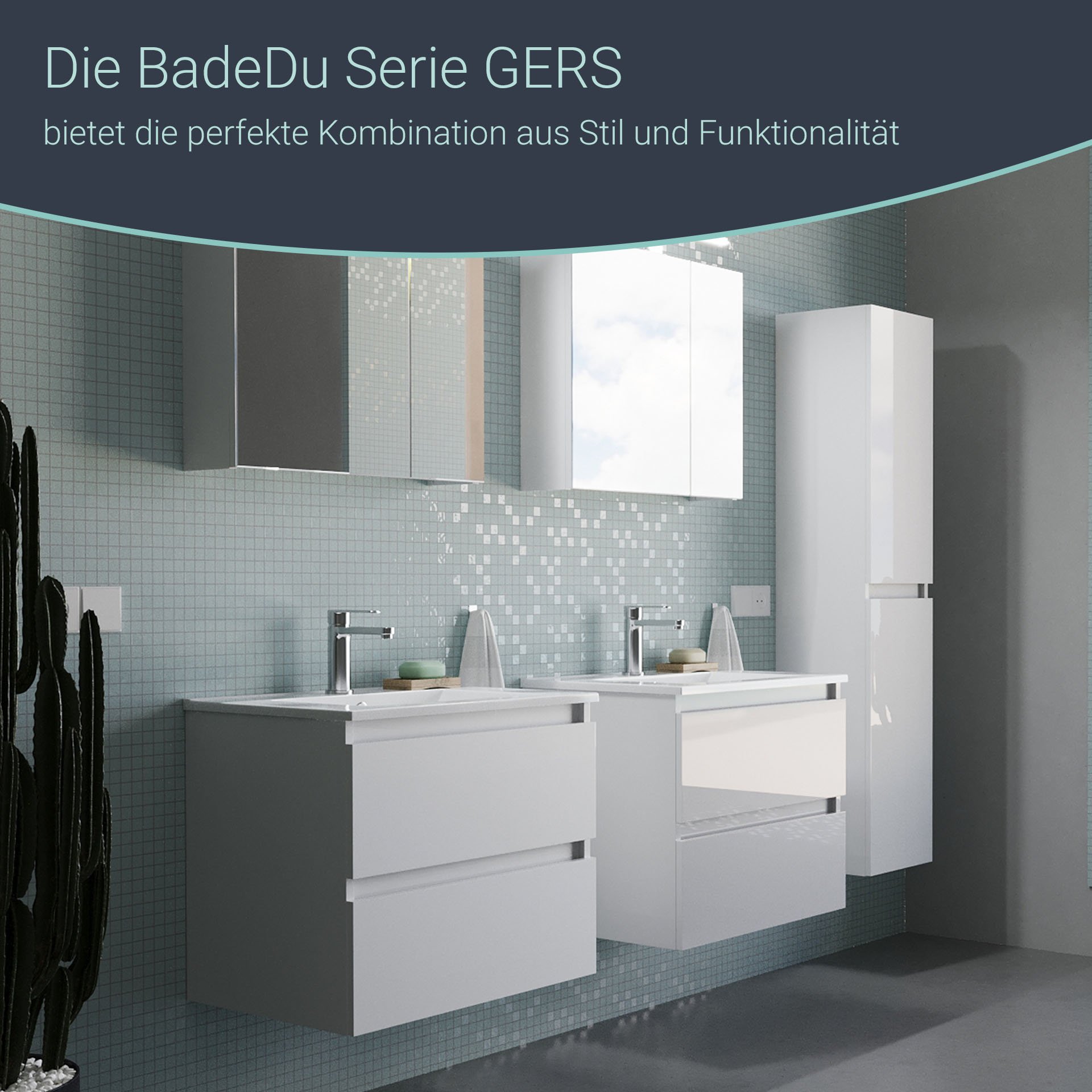 Die Farbe Weiß vermittelt Badezimmern ein Gefühl von Sauberkeit und Frische. In Verbindung mit grifflosen Badmöbel entsteht ein minimalistisches, zeitloses Design. Farbwirkung und Formensprache kommen effektiv zur Geltung. Das weiße, 80 cm breite 2-teilige Badmöbelset aus der Serie GERS von BadeDu überzeugt durch seine Zeitlosigkeit und Raffinesse. Zeitlos schöne Badezimmer sind mit diesem Set optimal ausgestattet. Zwei grifflose Schubladen bieten ausreichend Stauraum für Deine Badaccessoires. Ein Einsatz mit unterschiedlich großen Fächern aus Holz organisiert die kleinen Dinge, wie Lippenstift, Cremes, Makeup und andere Dinge für das tägliche Pflegeritual. So ist alles ordentlich aufgeräumt und immer griffbereit. Passgenau auf dem weißen Waschtischunterschrank sitzt das Waschbecken aus feiner, weißer Keramik. Seine geradlinige Gestaltung lässt Dein Badezimmer modern und edel wirken. Das Badmöbelset in seiner Kombination BADEDU GERS Waschbecken mit Unterschrank 80 cm breit, Weiß, Waschbecken Keramik Weiß erzeugt Harmonie in Perfektion.