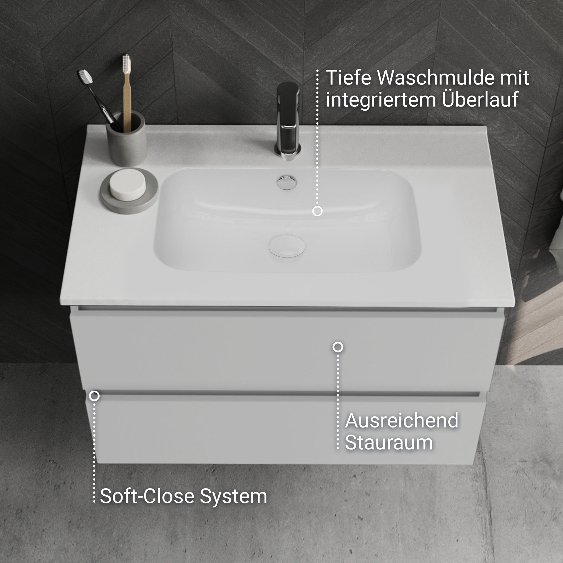 - Besonderheit: tiefe Waschmulde