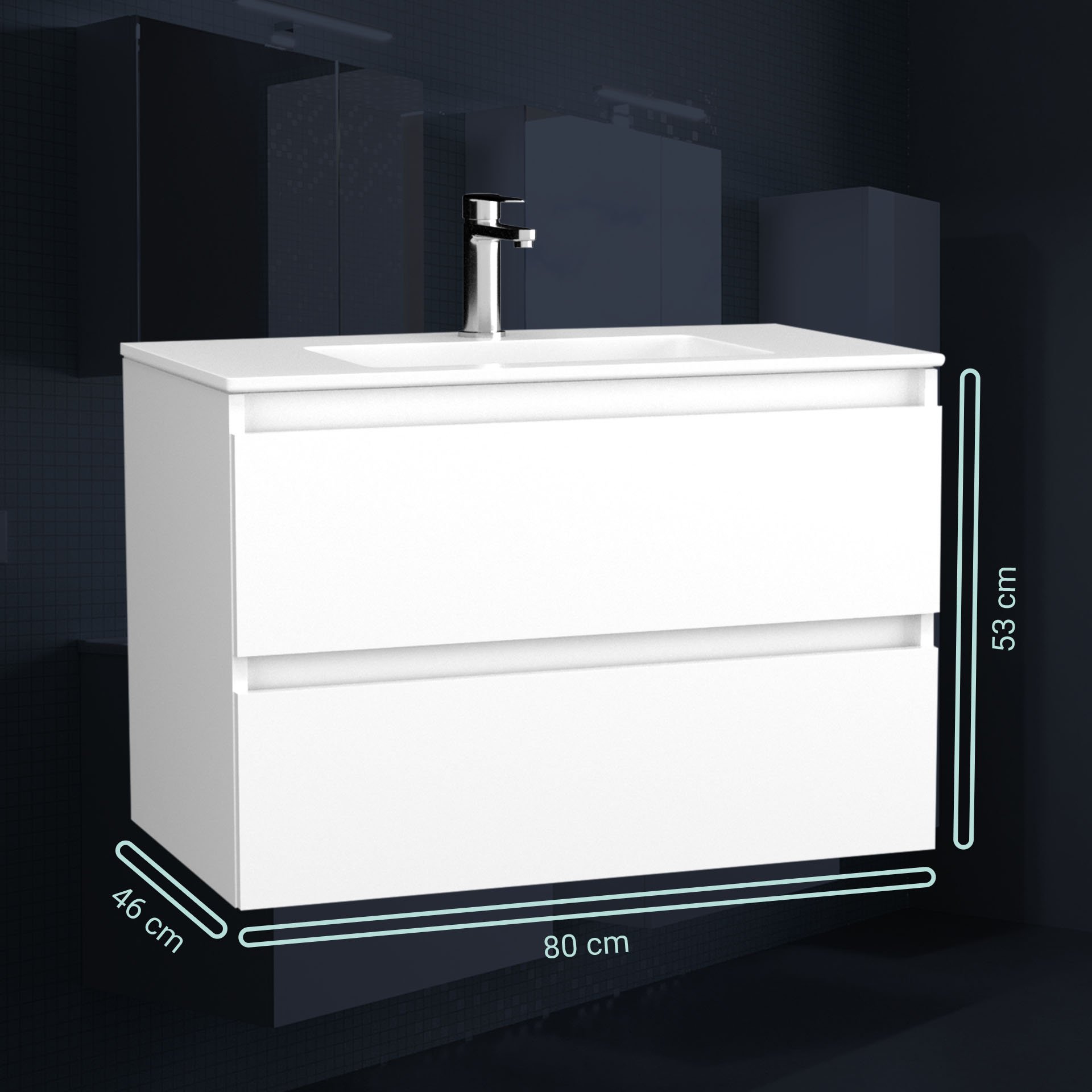 BadeDu GERS Waschbecken mit Unterschrank 80 cm breit, Weiß, Waschbecken Keramik Weiß