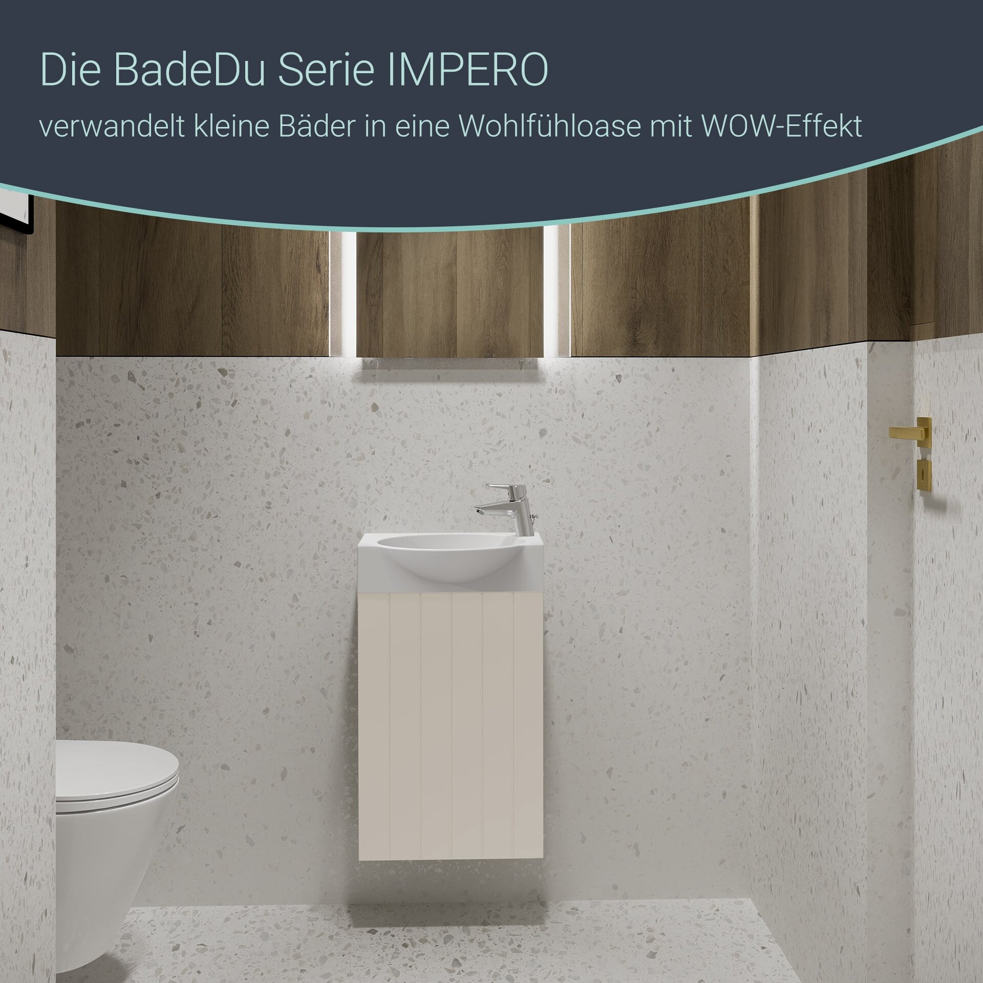BadeDu IMPERO Gäste WC Waschtisch Set 40 cm breit, Beige, Waschbecken Keramik Weiß