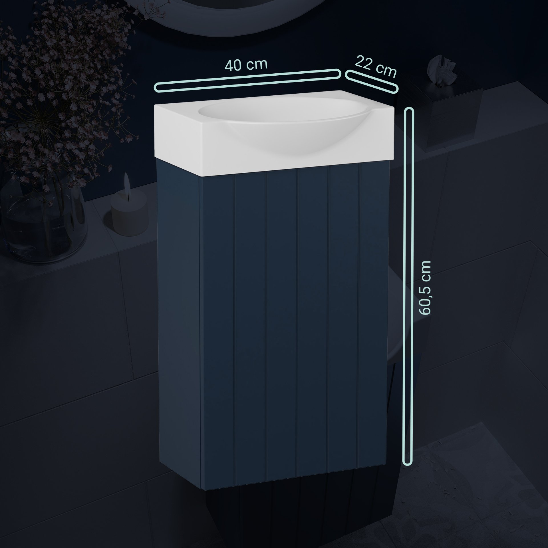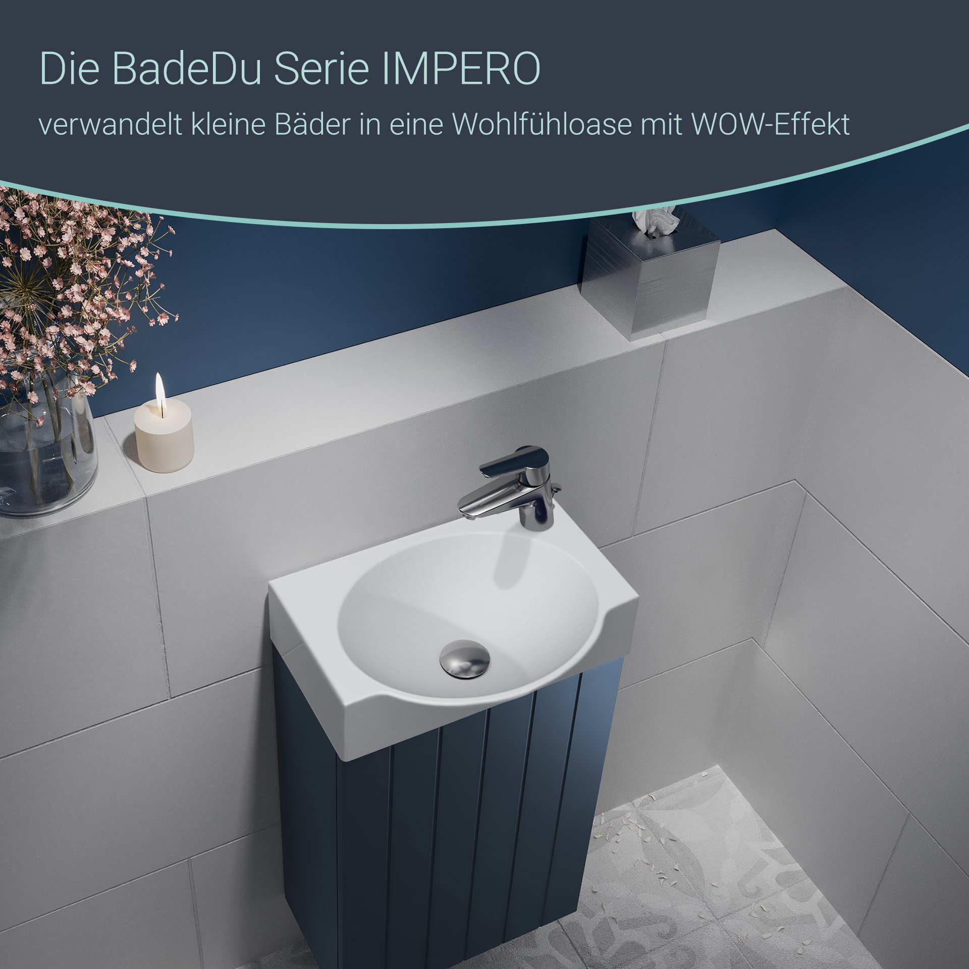 BadeDu IMPERO Gäste WC Waschtisch Set 40 cm breit, Blau, Waschbecken Keramik Weiß