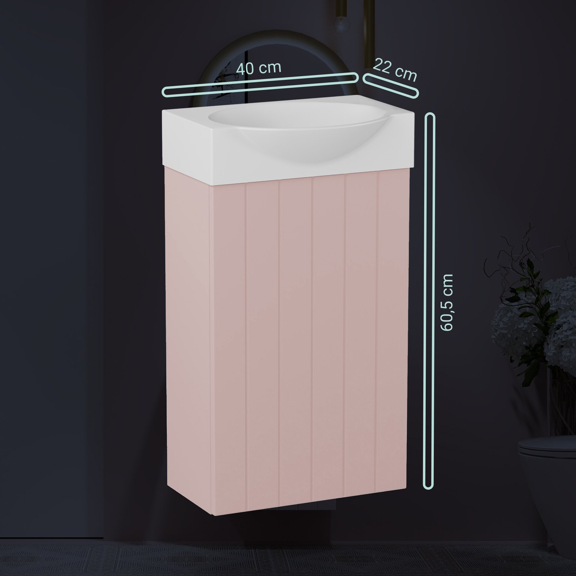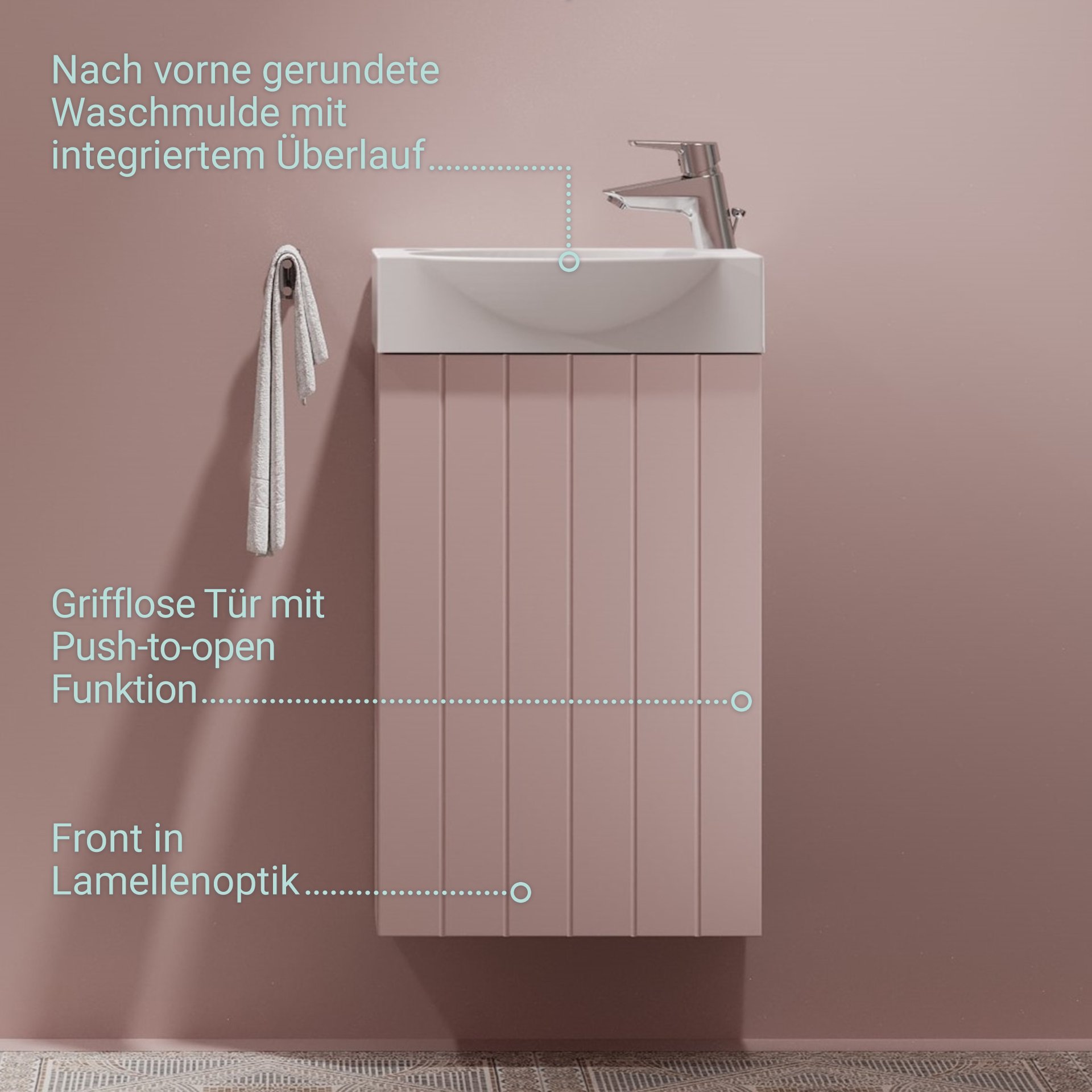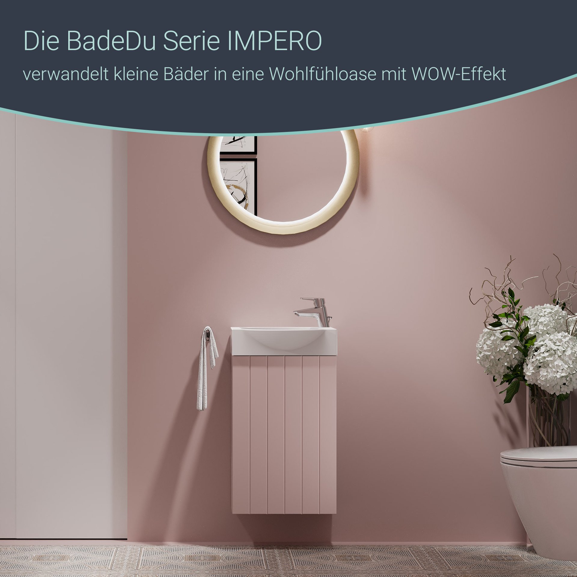 BadeDu IMPERO Gäste WC Waschtisch Set 40 cm breit, Rosa, Waschbecken Keramik Weiß