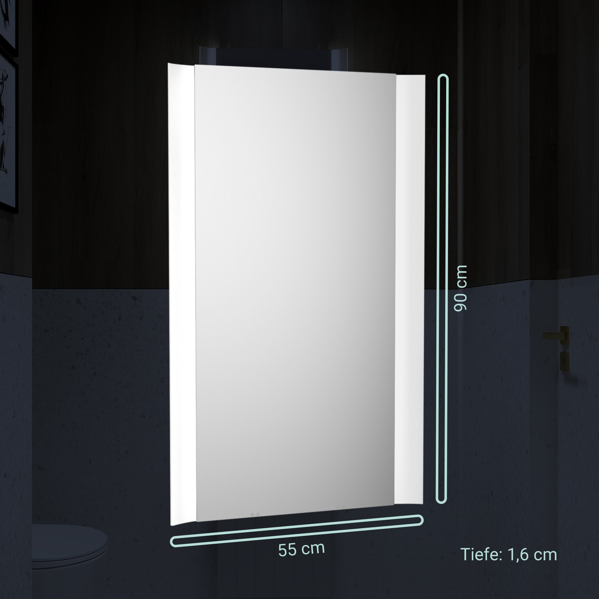 Du suchst modernes Lichtdesign für Dein Badezimmer? Dann ist der BadeDu IMPERO LED Spiegel mit seinen senkrecht verlaufenden Lichtsäulen genau die richtige Wahl. Der 55 cm breite LED-Spiegel verbindet elegantes Design mit moderner Technik. So entsteht eine angenehme Lichtatmosphäre für das tägliche Pflegeritual. Ein echter Blickfang im Badezimmer oder Wohnbereich. Die beidseitige LED-Beleuchtung sorgt für eine blendfreie Ausleuchtung der Spiegelfläche. Das natürliche Licht in der Farbtemperatur Neutralweiß ist perfekt zum Schminken, Rasieren oder Stylen geeignet. Und willst Du die Beleuchtung individuell an Deine Bedürfnisse anpassen, dann wird Dich die Dimmfunktion des modernen Spiegels begeistern. Hell und klar am Morgen oder sanft gedimmt am Abend. Der BADEDU IMPERO LED Spiegel 55 cm breit wird mit dem mitgelieferten Befestigungsmaterial hängend an der Wand montiert. Sicher verpackt wird das Design Highlight mit LED-Beleuchtung direkt zu Dir nach Hause geliefert.