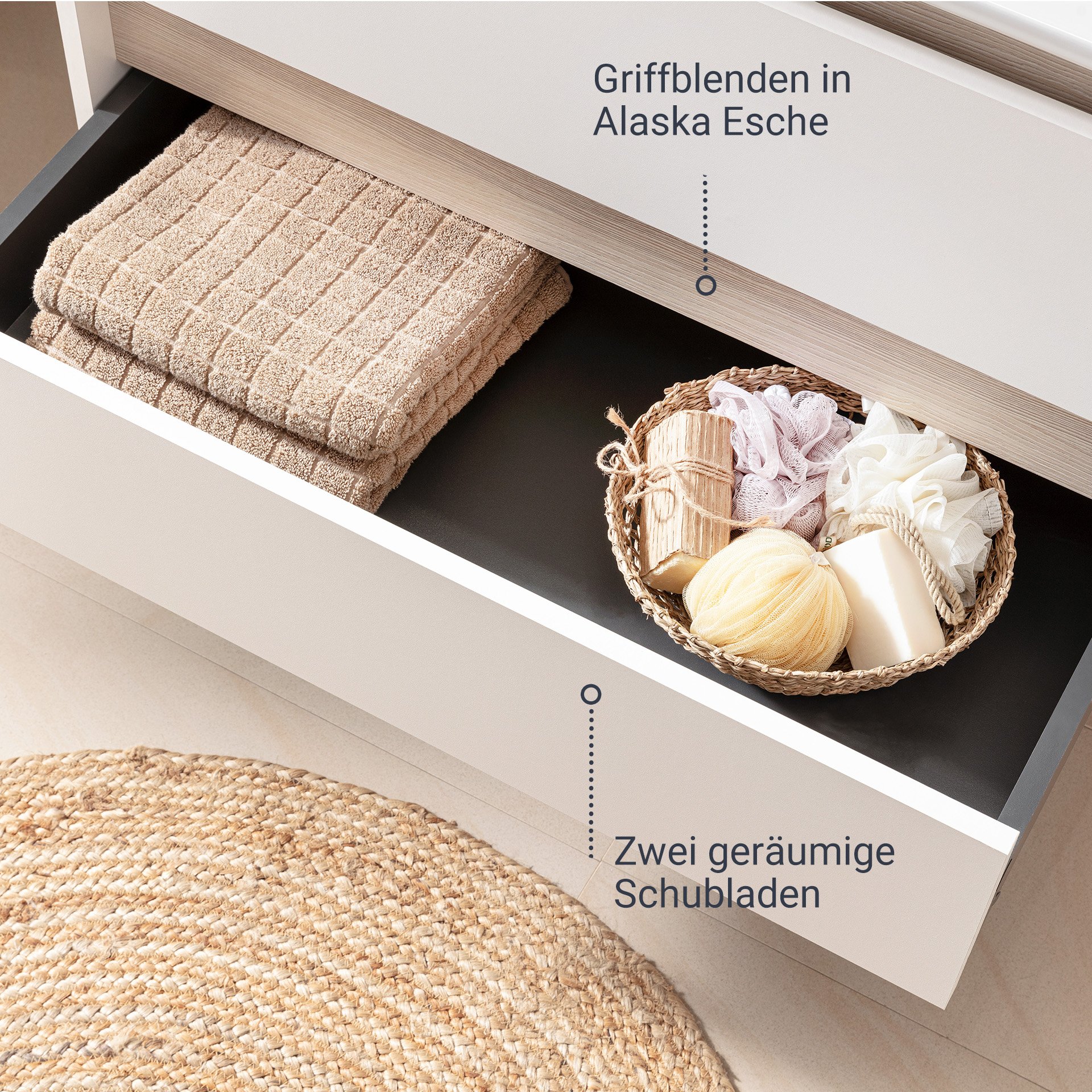 - Farbe/Design: Weiß matt/Alaska Esche Holzoptik