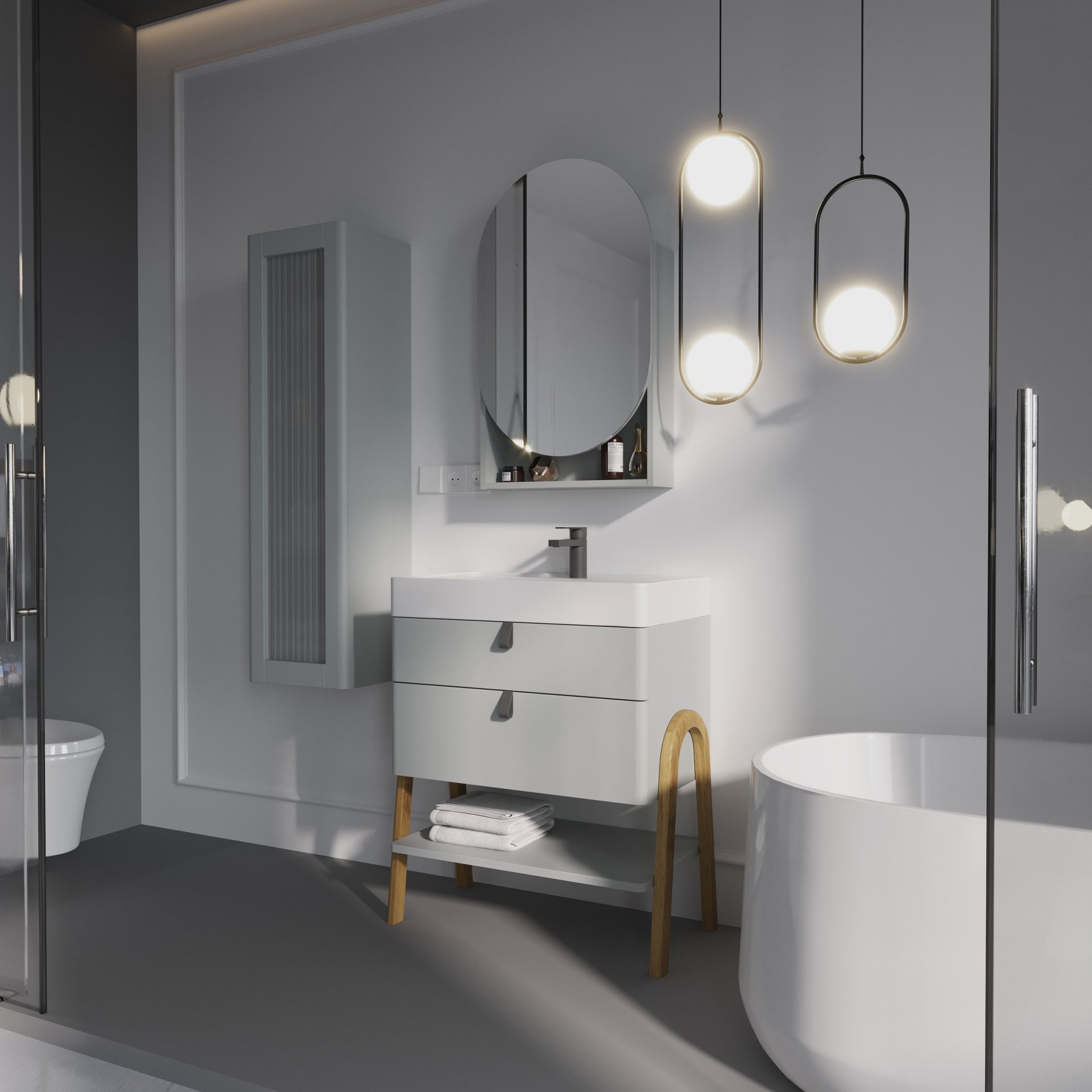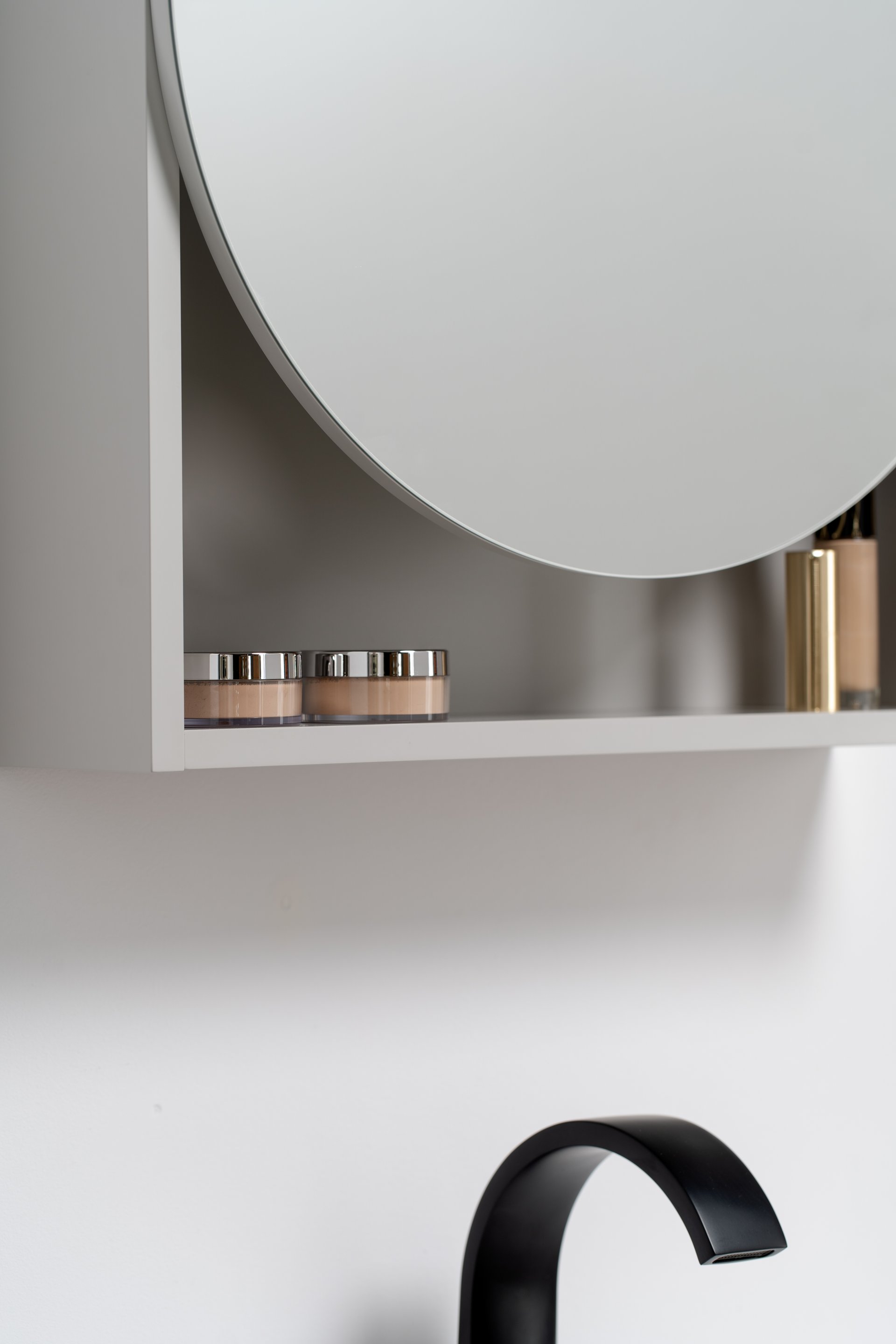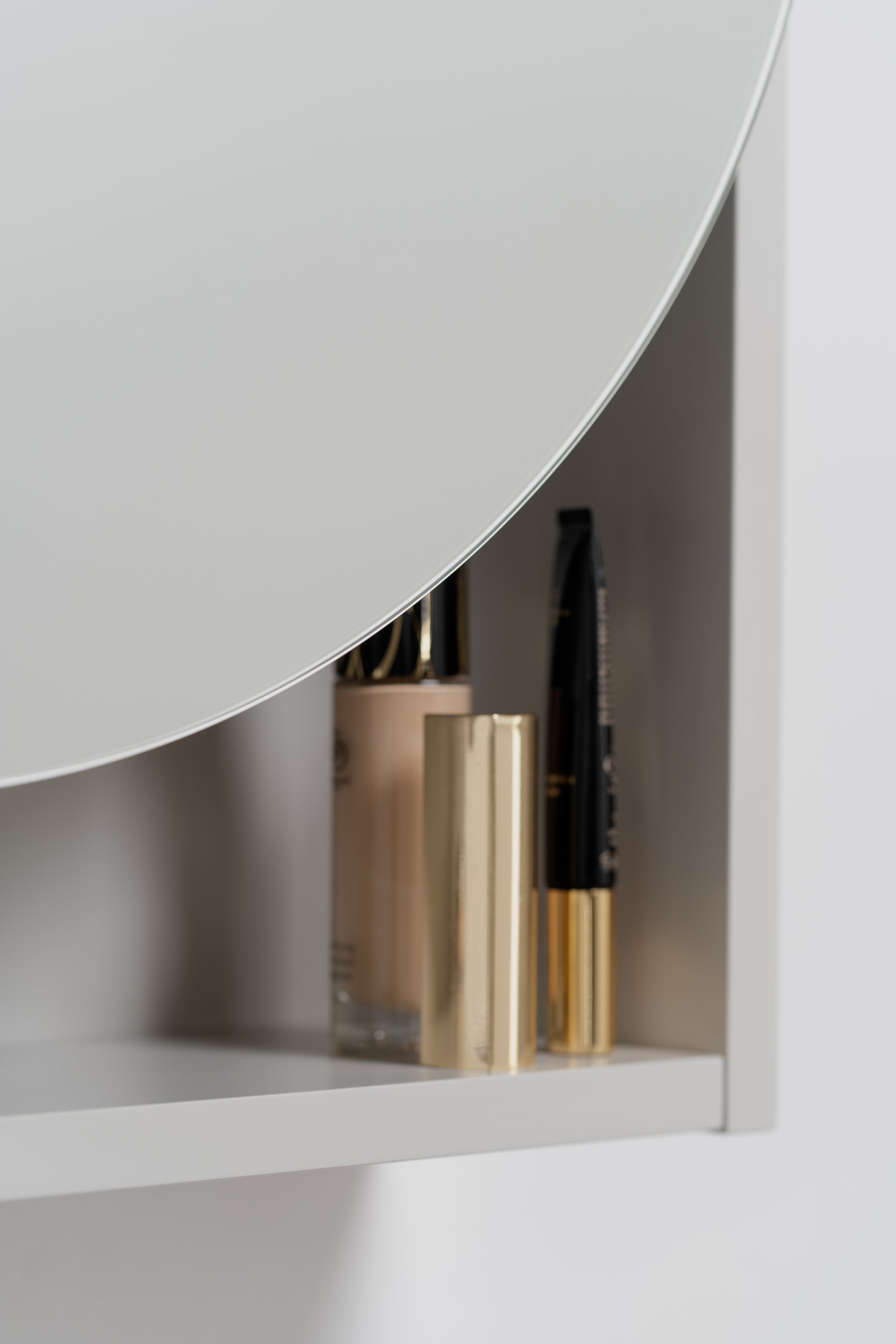 So außergewöhnlich und individuell wie die Serie PINA von BadeDu ist, so ist auch der 50 cm breite Spiegelschrank aus der gleichen Serie. Eine organische Spiegelform sitzt auf einem rechteckigen Rahmen. Der grifflose Spiegel lässt sich leicht nach vorn öffnen. Eine Ablagefläche im Inneren sorgt für eine clevere Unterteilung. Durch die extravagante Gestaltung ist bei geschlossener Spiegeltür die untere Ablagefläche mit den Badaccessoires sichtbar. Mit dem Korpus in elegantem Silbergrau, passt der Spiegelschrank perfekt zu den anderen Möbeln aus der Serie PINA. Diese offene Formensprache verleiht dem Möbel skandinavische Leichtigkeit. Der BADEDU PINA Spiegelschrank 50 cm breit, Grau, mit Ablage zeichnet sich durch langlebige Materialien und eine intelligente Ausstattung aus. Er ist vormontiert und damit schnell in Deinem Badezimmer integriert. Möbel von BadeDu sind bekannt für ihre Qualität und ihr außergewöhnliches Design. Sie verleihen Deinem Badezimmer eine zeitlose und beruhigende Atmosphäre.