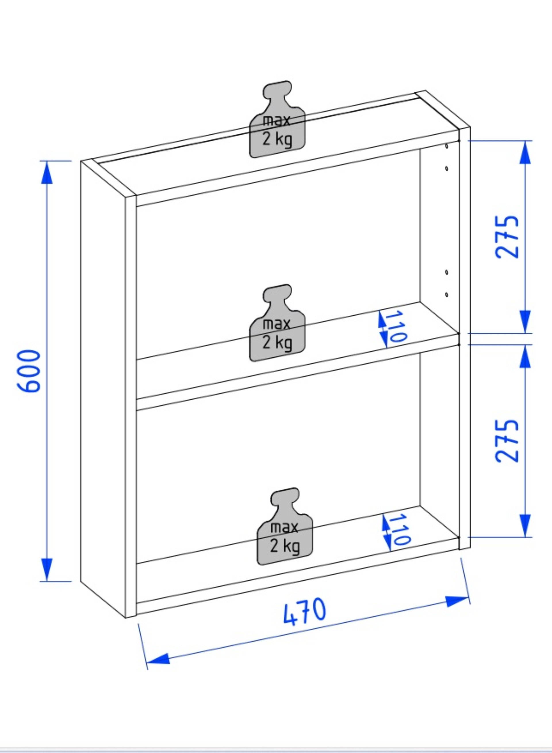 - Ausstattung: Wandbefestigung inklusive, 1 Einlegeboden, 1 Ablage