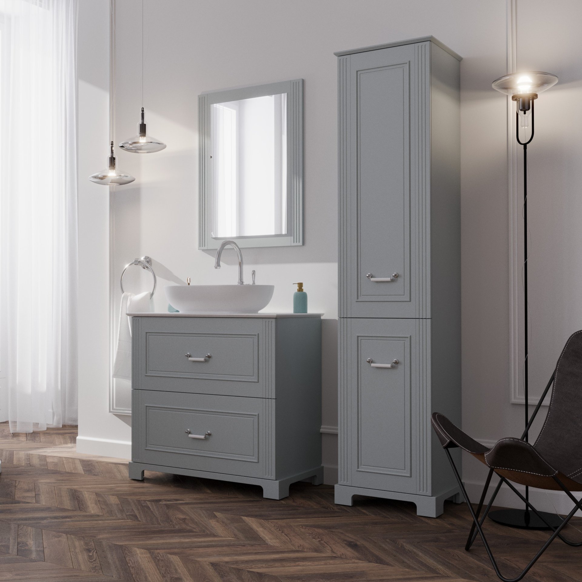 BadeDu RILA Hochschrank 43 cm breit, Grau matt, mit Füßen