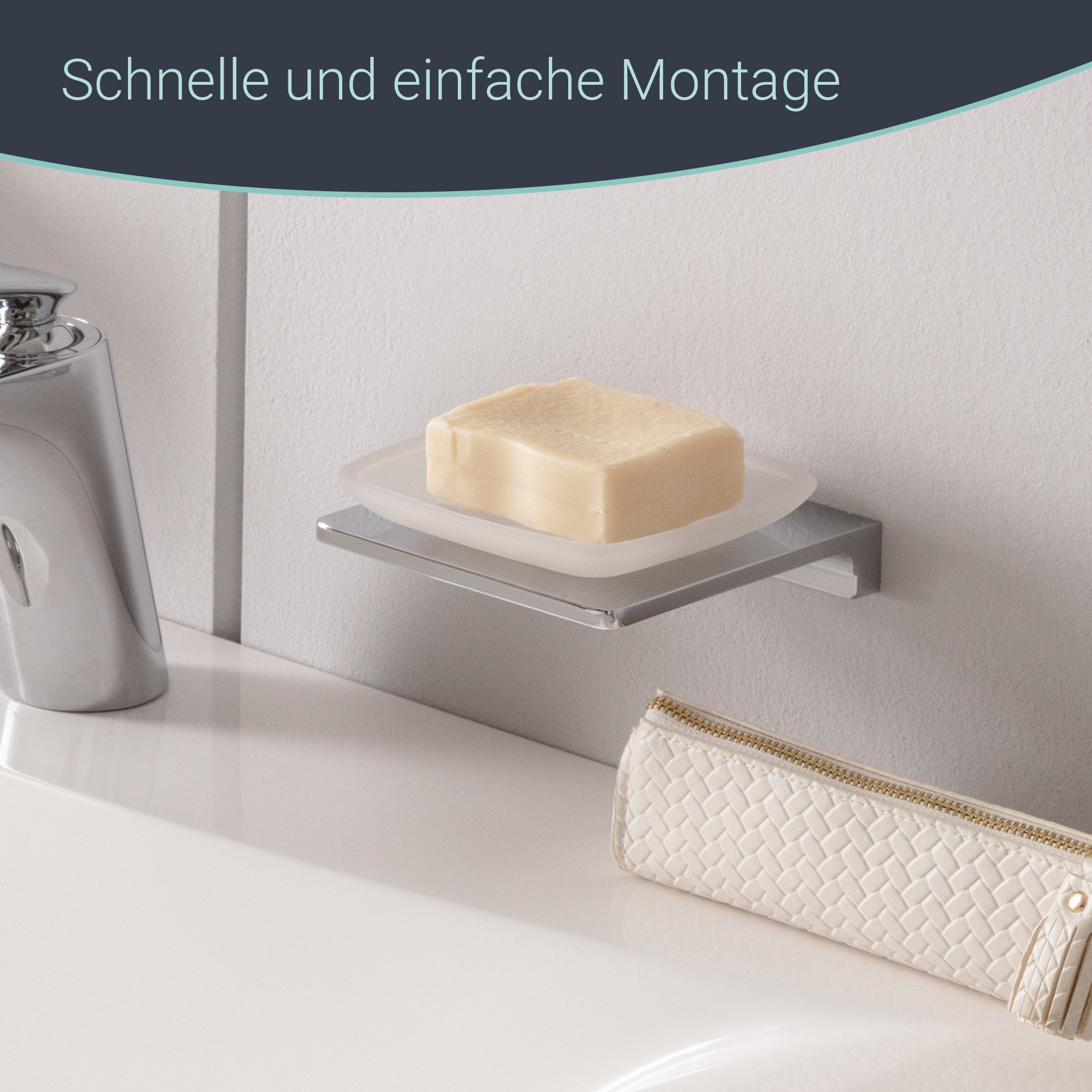 Mit dieser hochwertigen Ablageschale in Chrom Glanz von BadeDu erhält Dein Badezimmer das gewisse Etwas. Werte Dein Badezimmer mit dieser Designer Schale auf! Du kannst Deine Seife hygienisch ablegen und schaffst Platz und Ordnung an Deinem Waschbecken. Die exquisite Metallausführung sorgt für Langlebigkeit und Haltbarkeit. Zur Reinigung nimm einfach die satinierte Glasschale aus der Halterung. Mit dem hochwertigen Montagematerial ist die BadeDu SIRIUS Ablageschale Chrom sicher und stabil an der Wand befestigt.