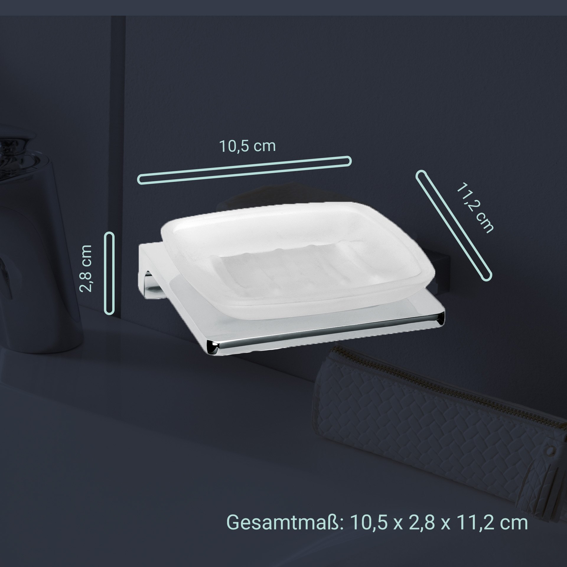 - Maße: 10,5 cm Breite, 2,8 cm Höhe und 11,2 cm Tiefe