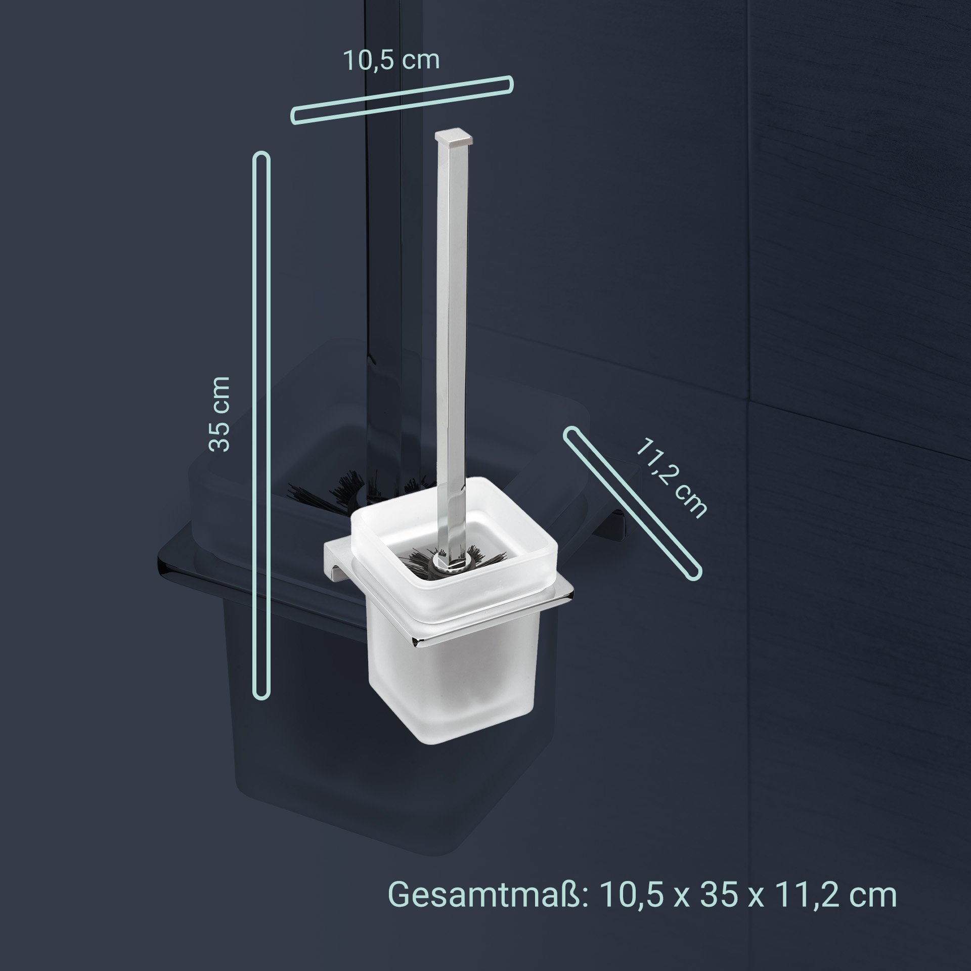 - Ausstattung: Toilettenbürste mit Halterung aus Glas, Montagezubehör