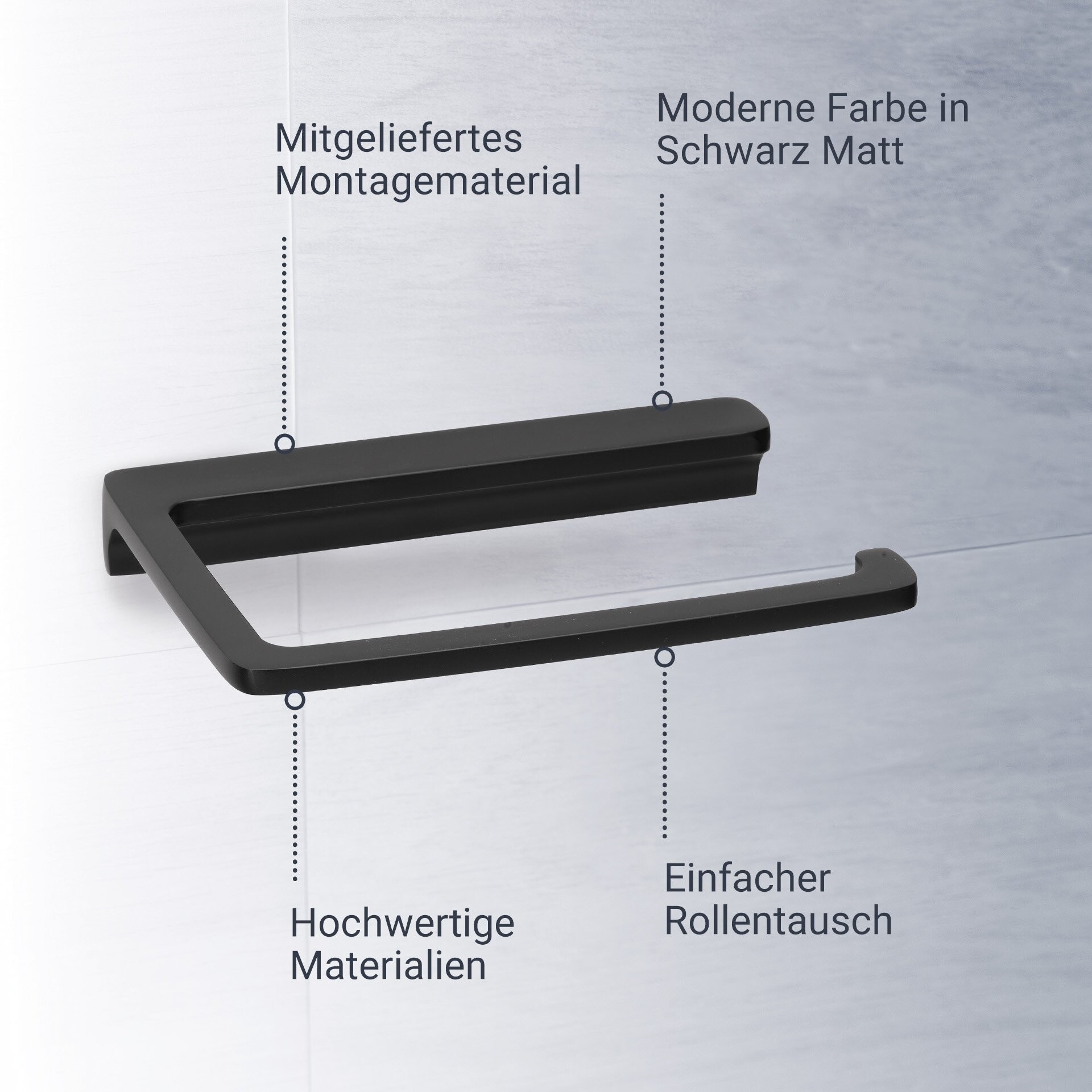 BadeDu SIRIUS Accessoire Set 3-teilig Schwarz matt, Handtuchhaken, Toilettenpapierhalter, Toilettenbürste mit Halter
