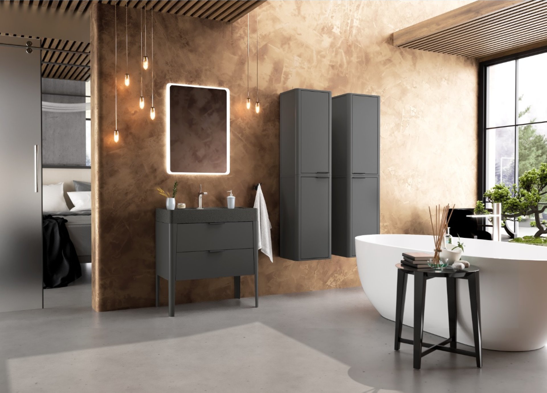 BadeDu SORA Hängeschrank 40 cm breit, Schwarz matt