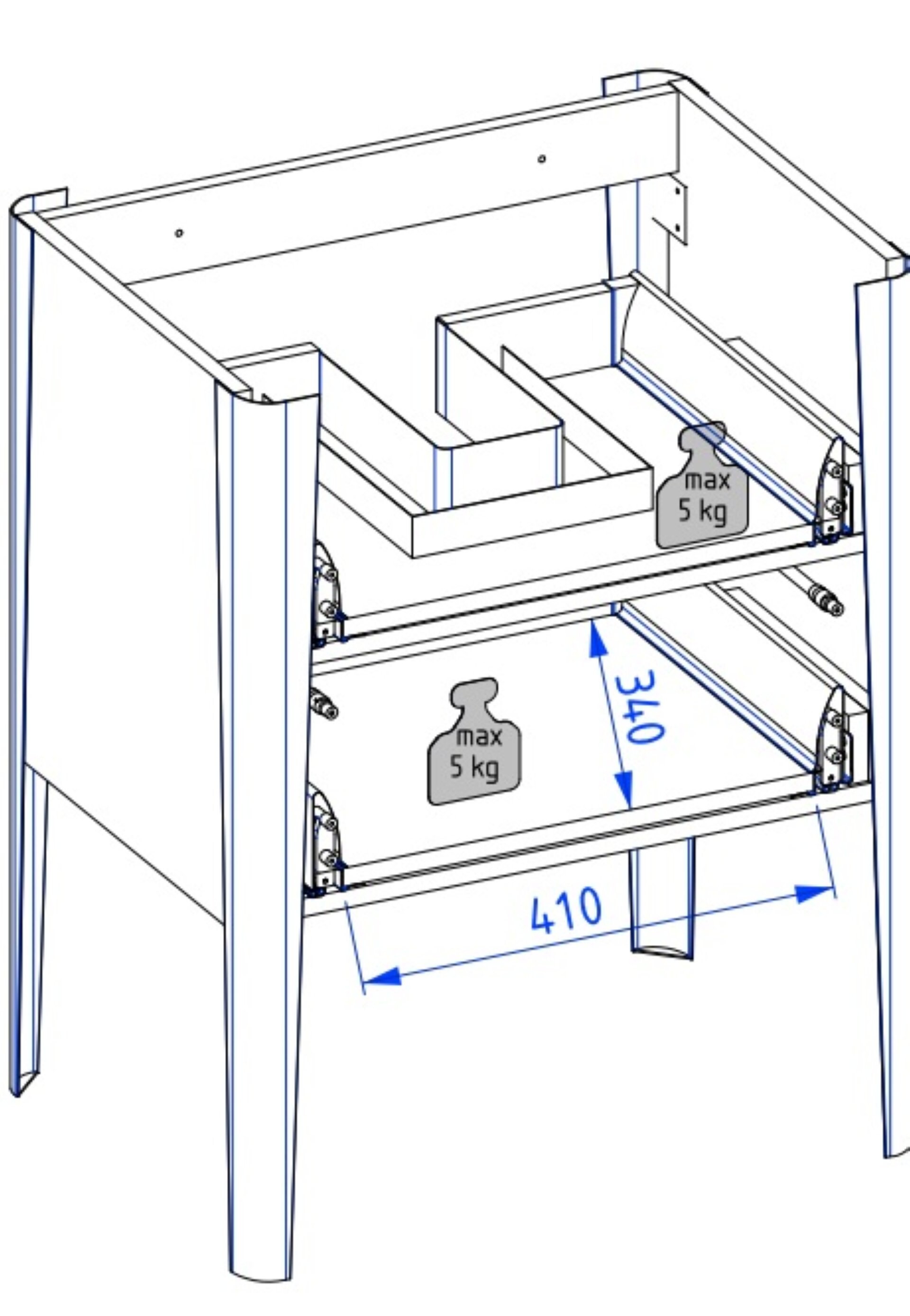 - Ausstattung: 2 Schubladen, obere Schublade mit Organizer