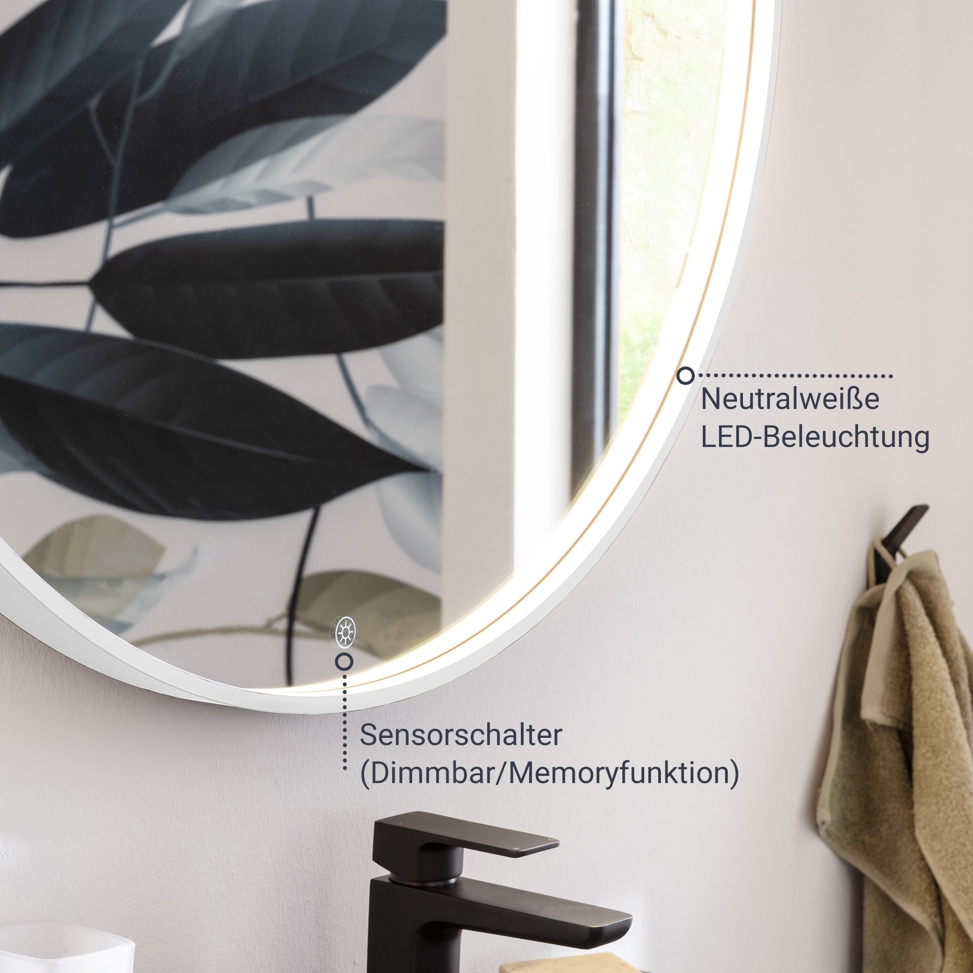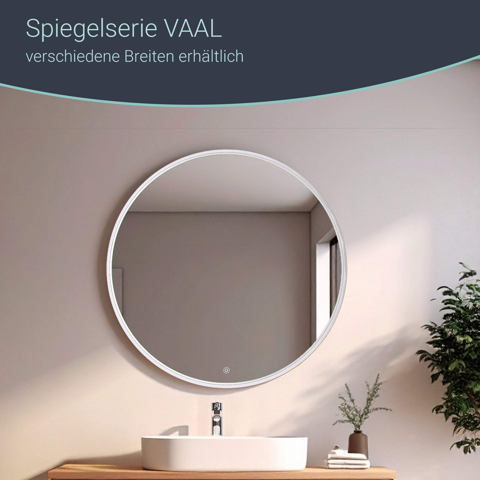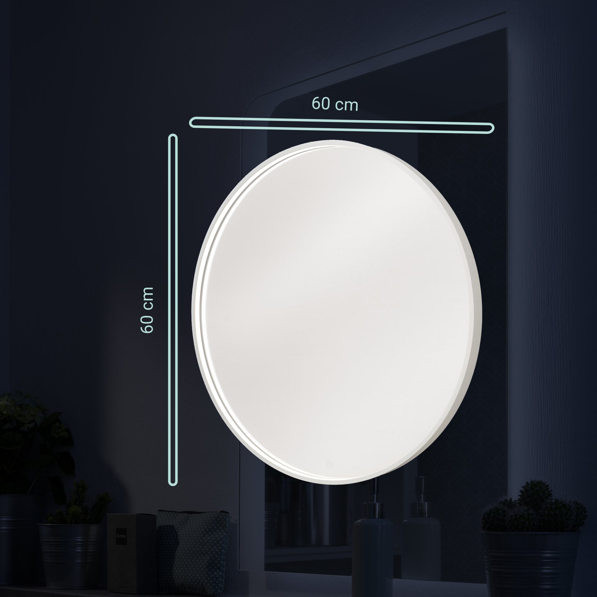 BadeDu VAAL LED Spiegel rund Ø 60 cm, Weiß, Sensor