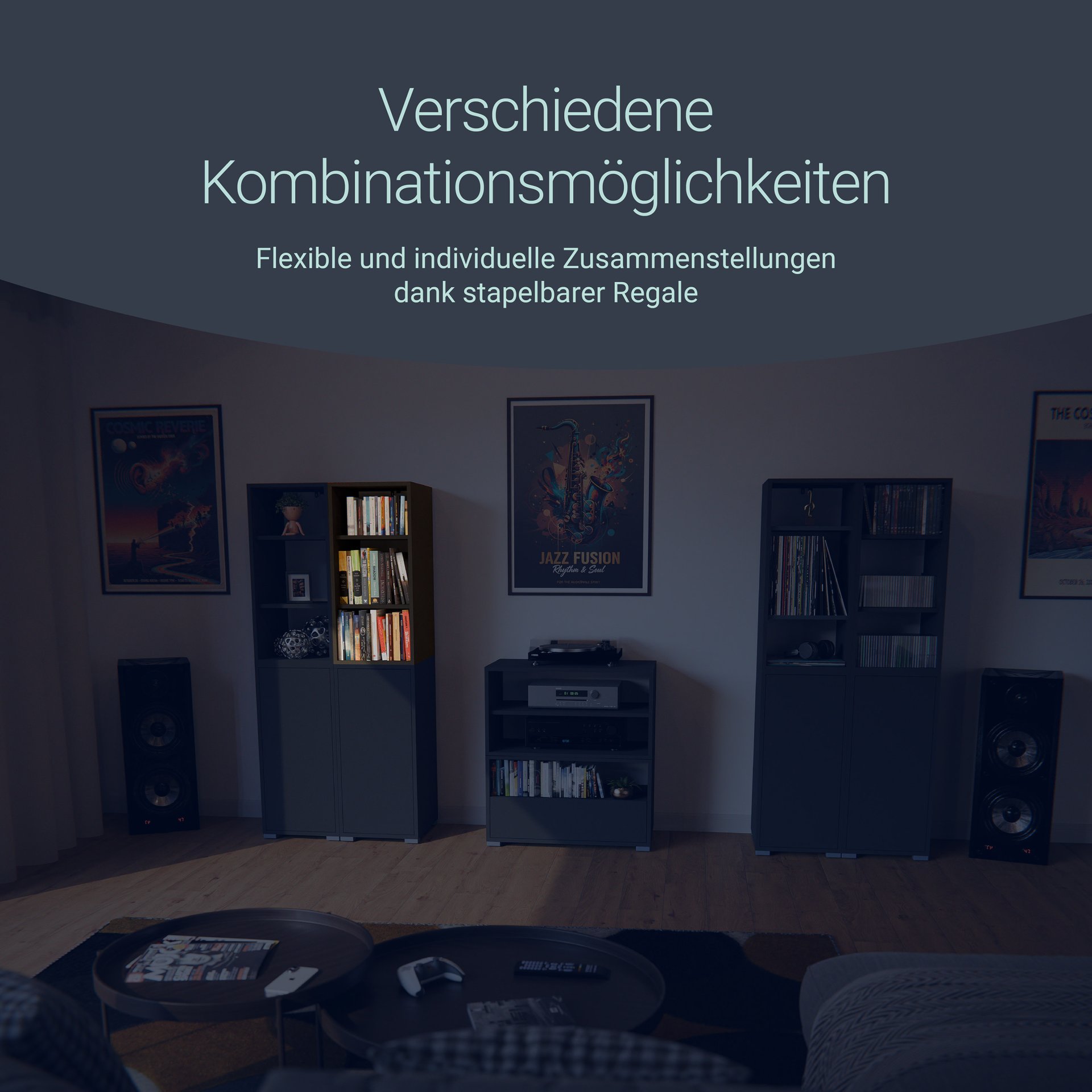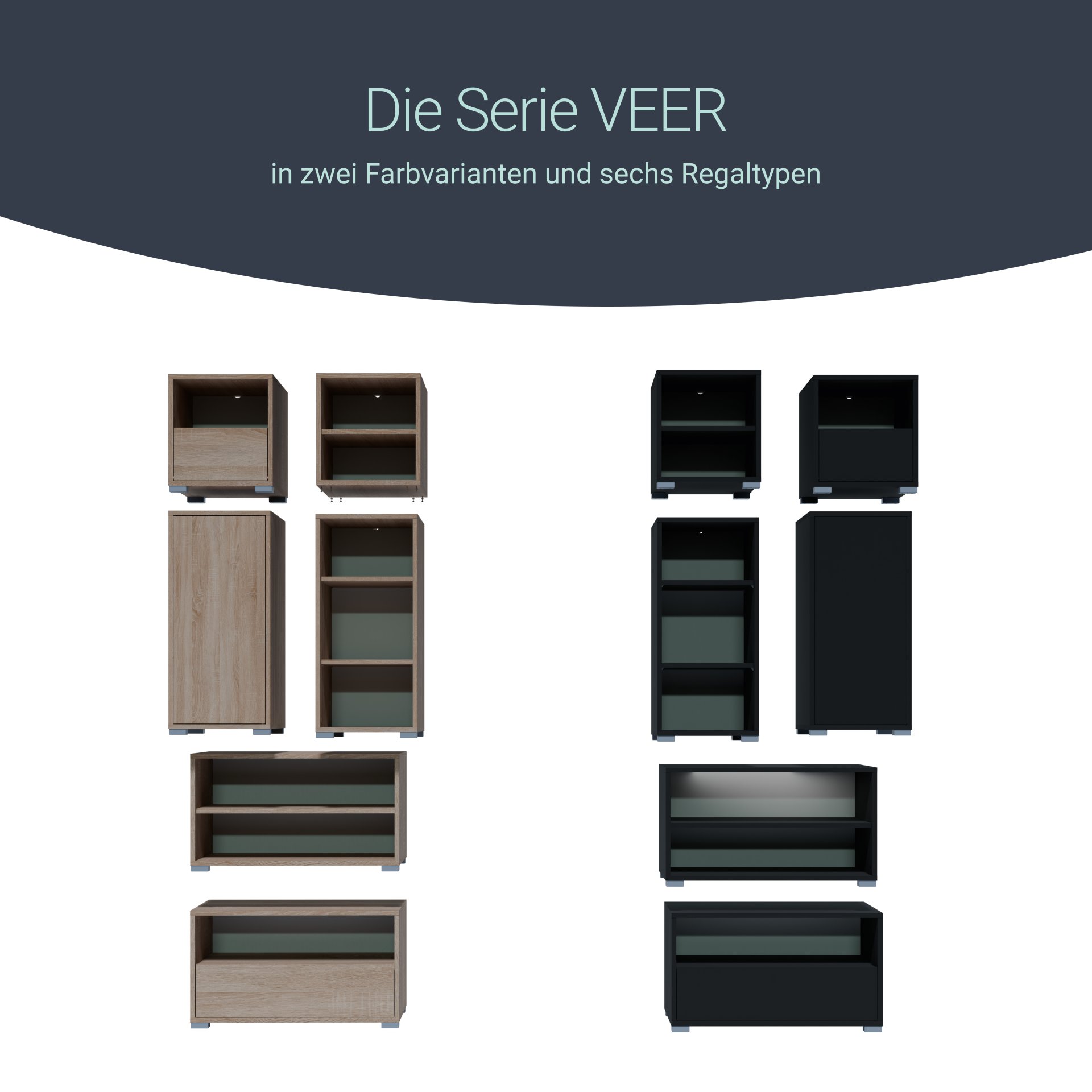 BadeDu VEER Regal 35 cm breit, Anthrazit, 3 Fächer
