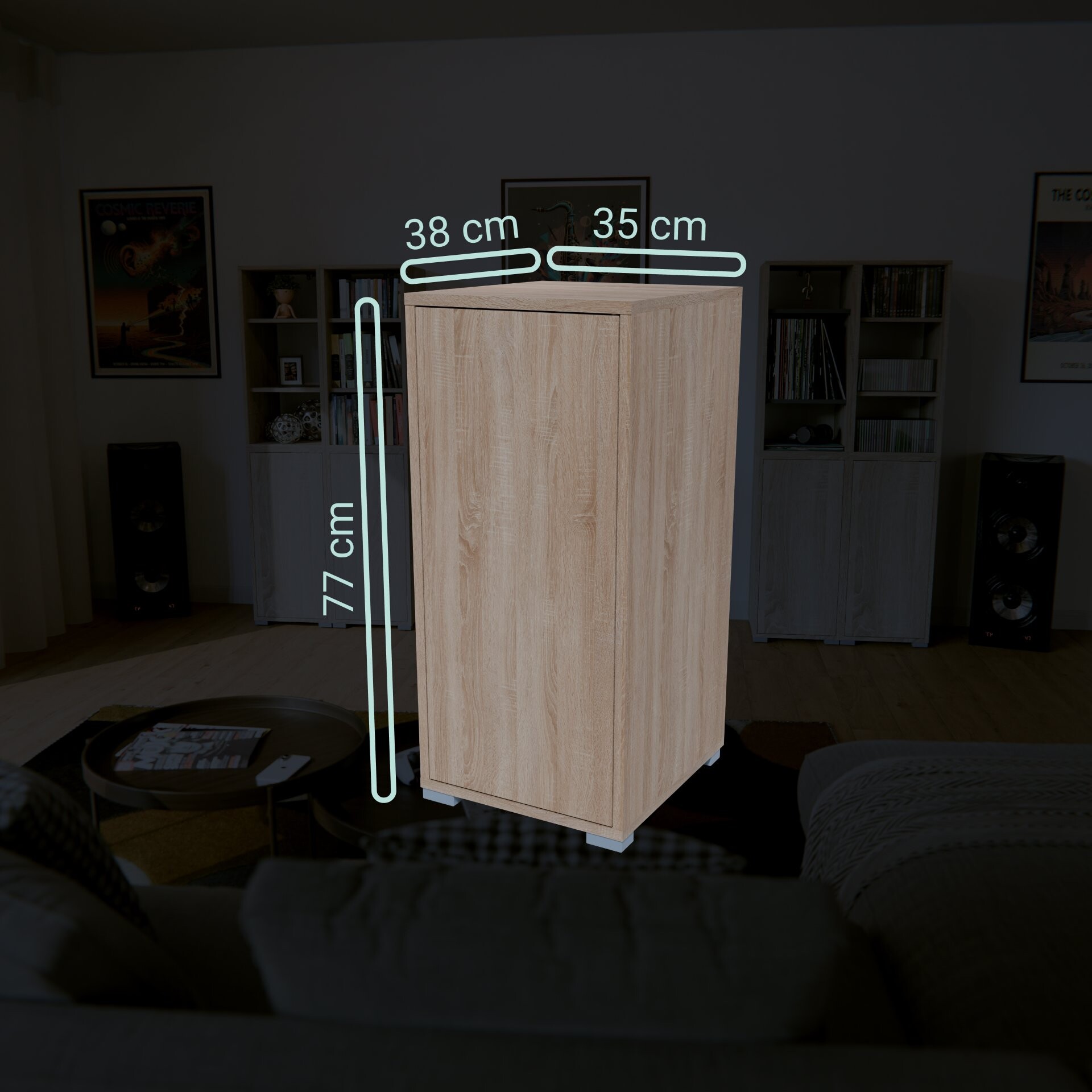 BadeDu VEER Regal 35 cm breit, Braun, 3 Fächer mit Tür