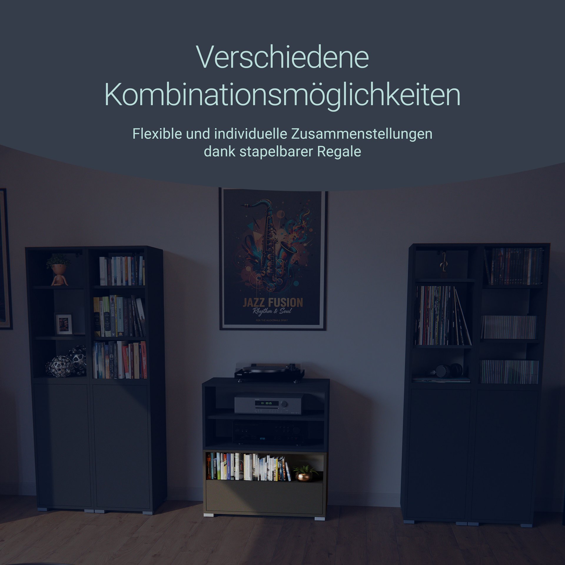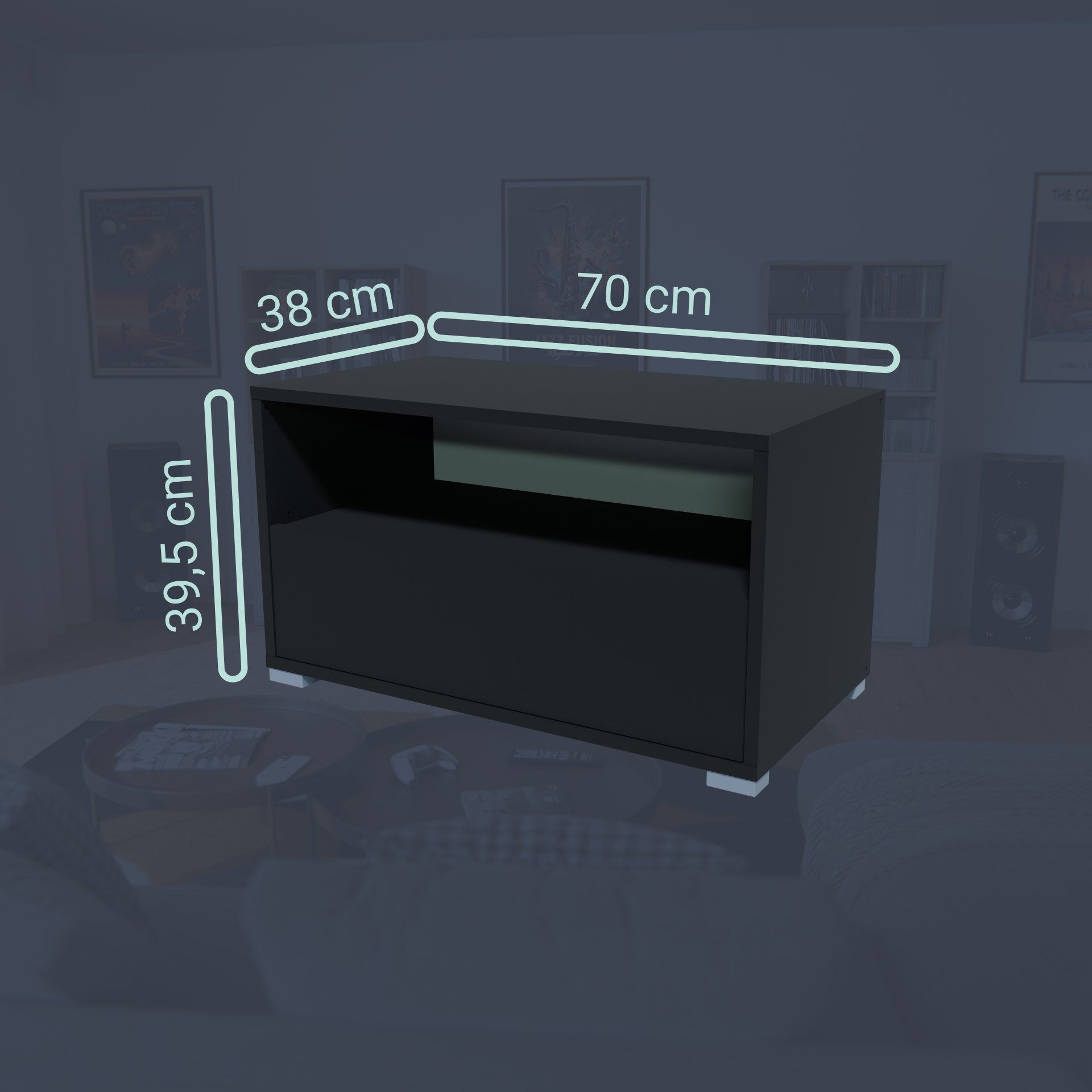 BadeDu VEER Regal 70 cm breit, Anthrazit, 2 Fächer mit Tür