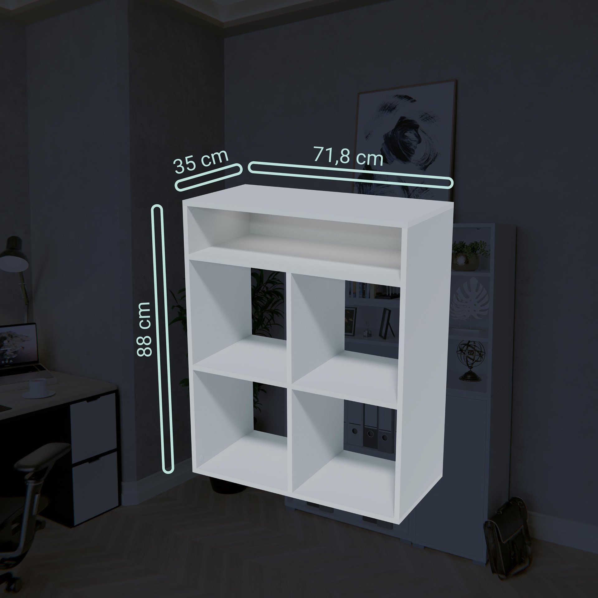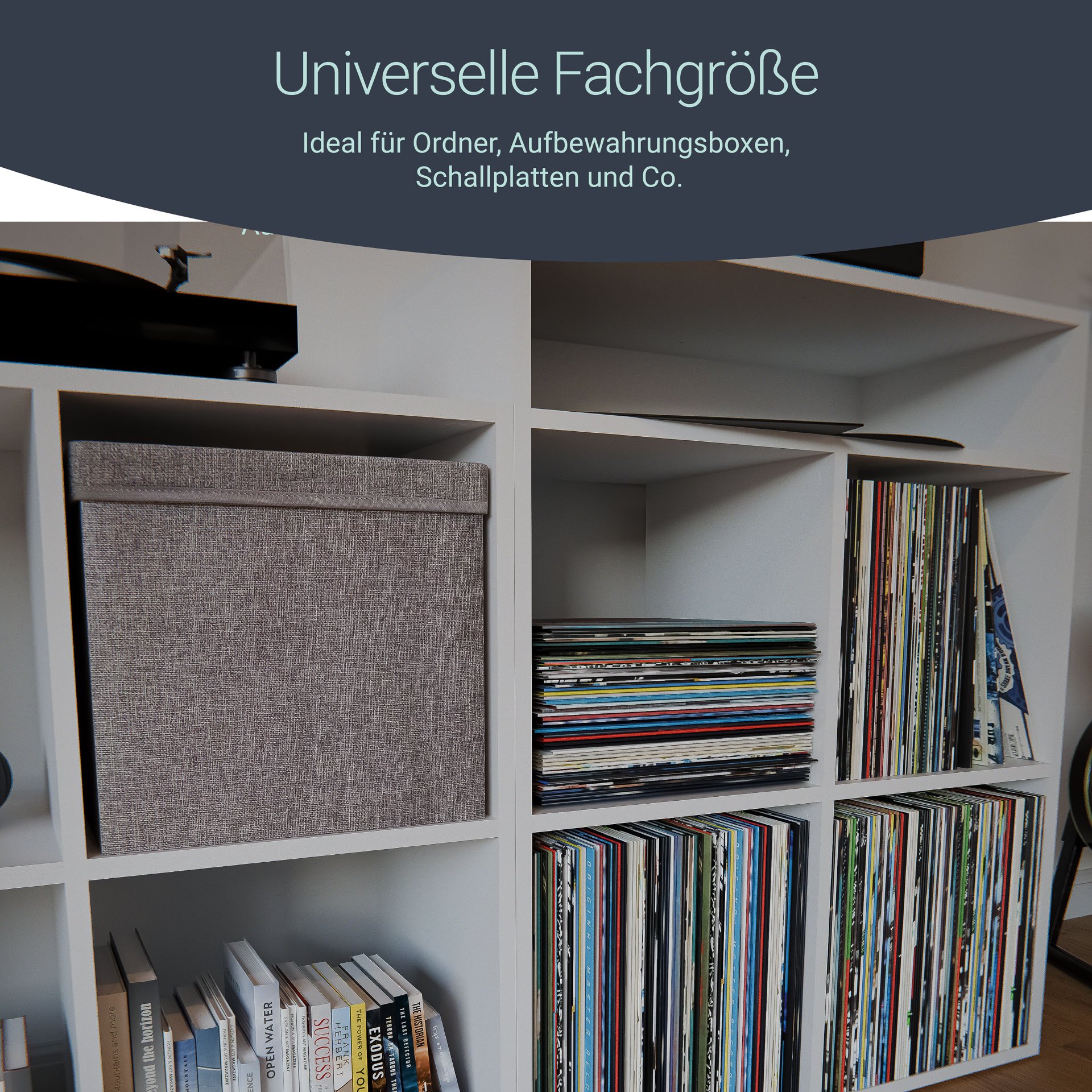 - Maße Fächer Quadratisch: 33,5 cm Breite, 33,5 cm Höhe und 35 cm Tiefe