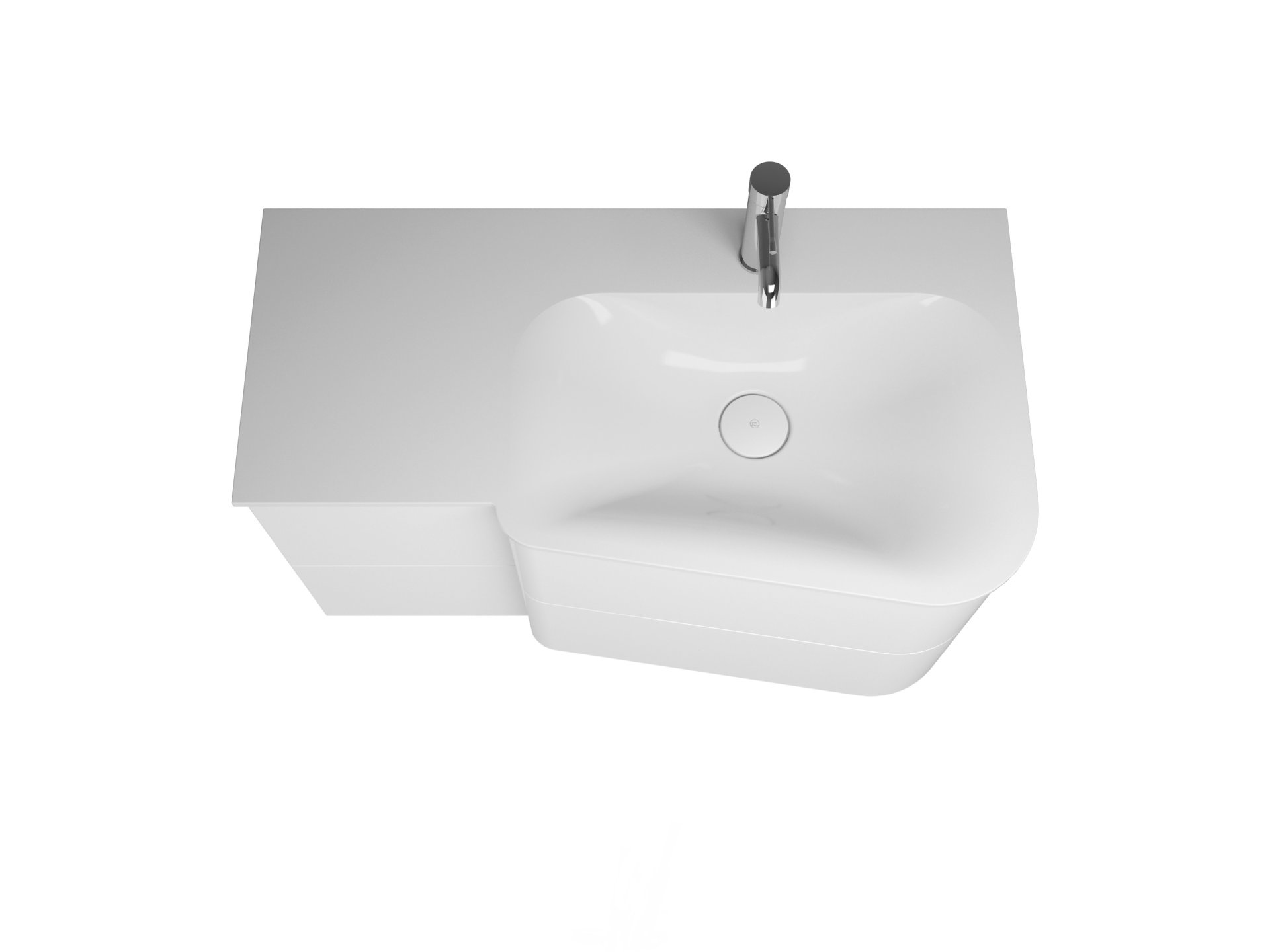 Burgbad BADU Waschbecken mit Unterschrank 92 cm breit, Weiß, Waschbecken Gussmarmor Weiß, Ablage links, 4 Schubladen