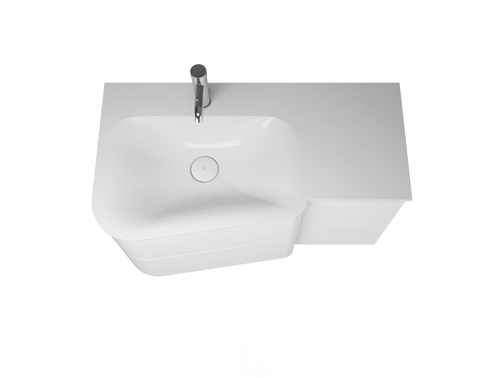 Burgbad BADU Waschbecken mit Unterschrank 92 cm breit, Weiß, Waschbecken Gussmarmor Weiß samt, Ablage rechts, 4 Schubladen