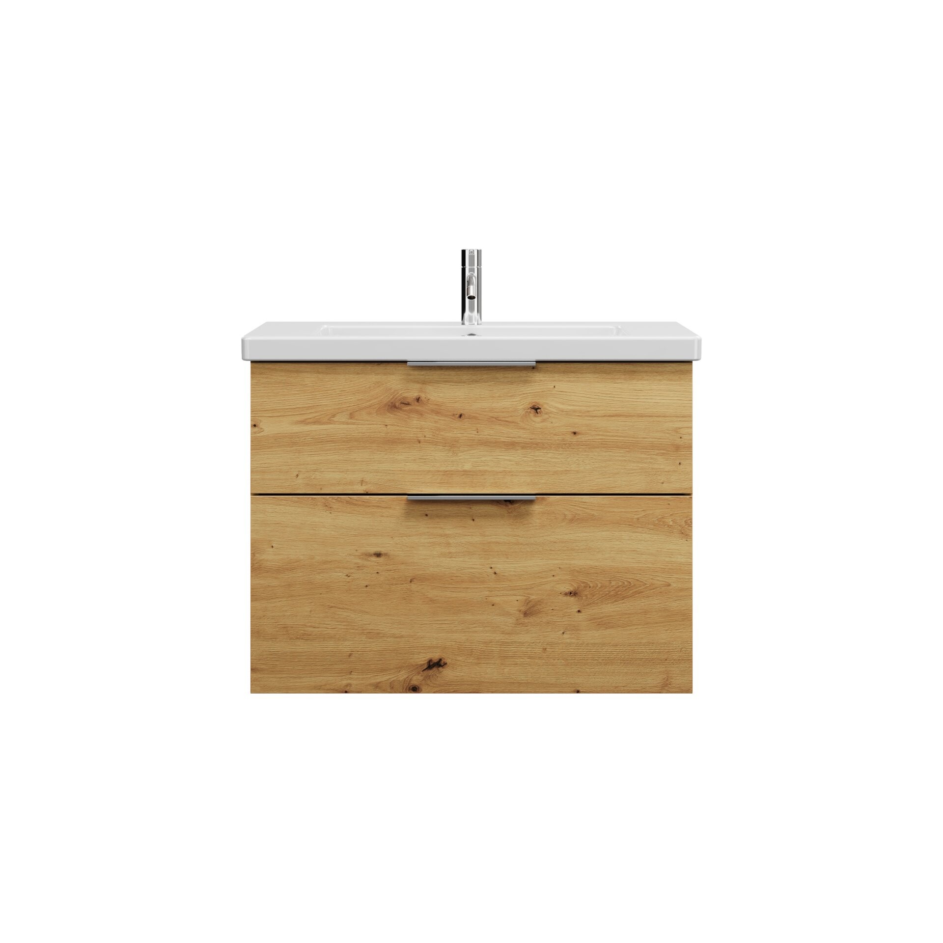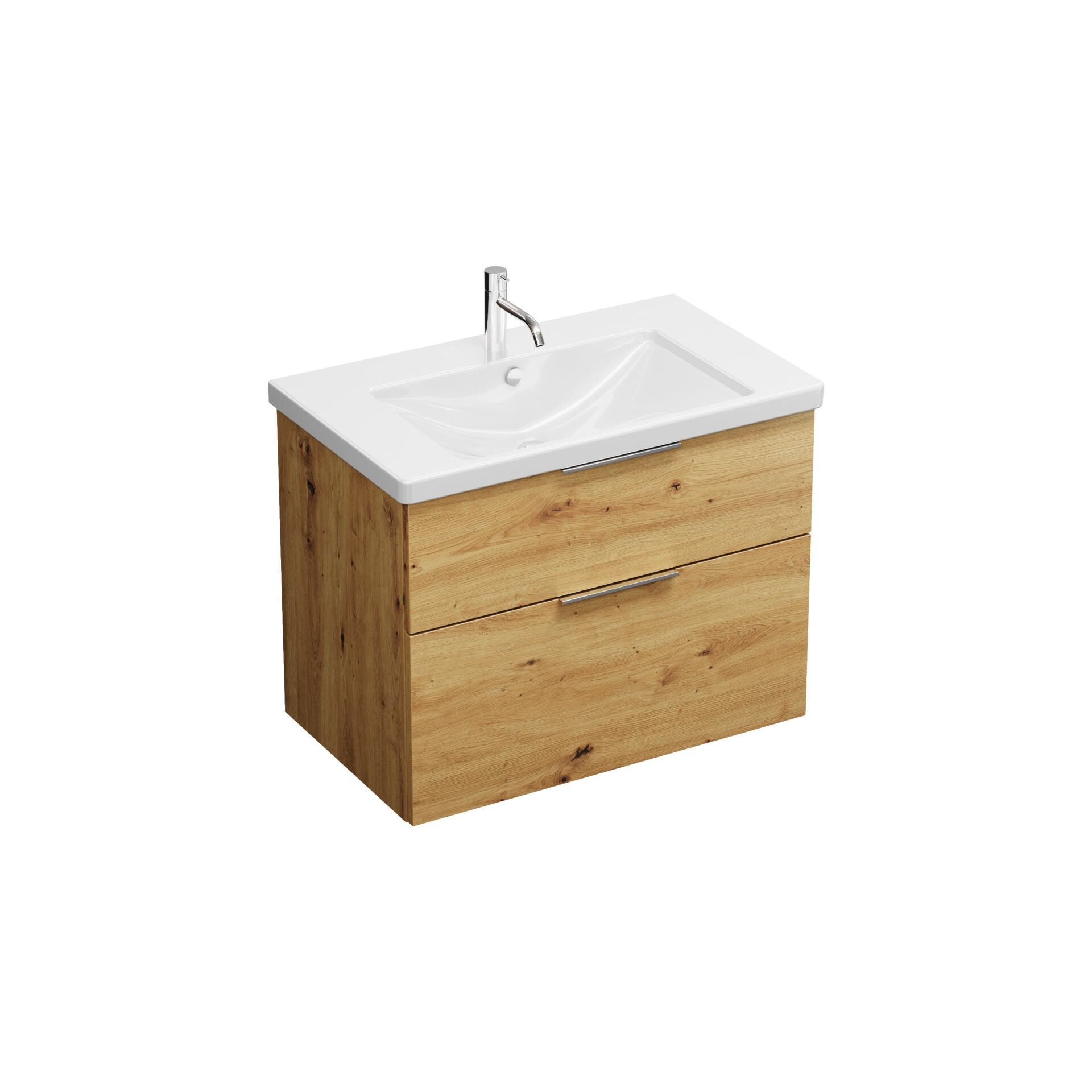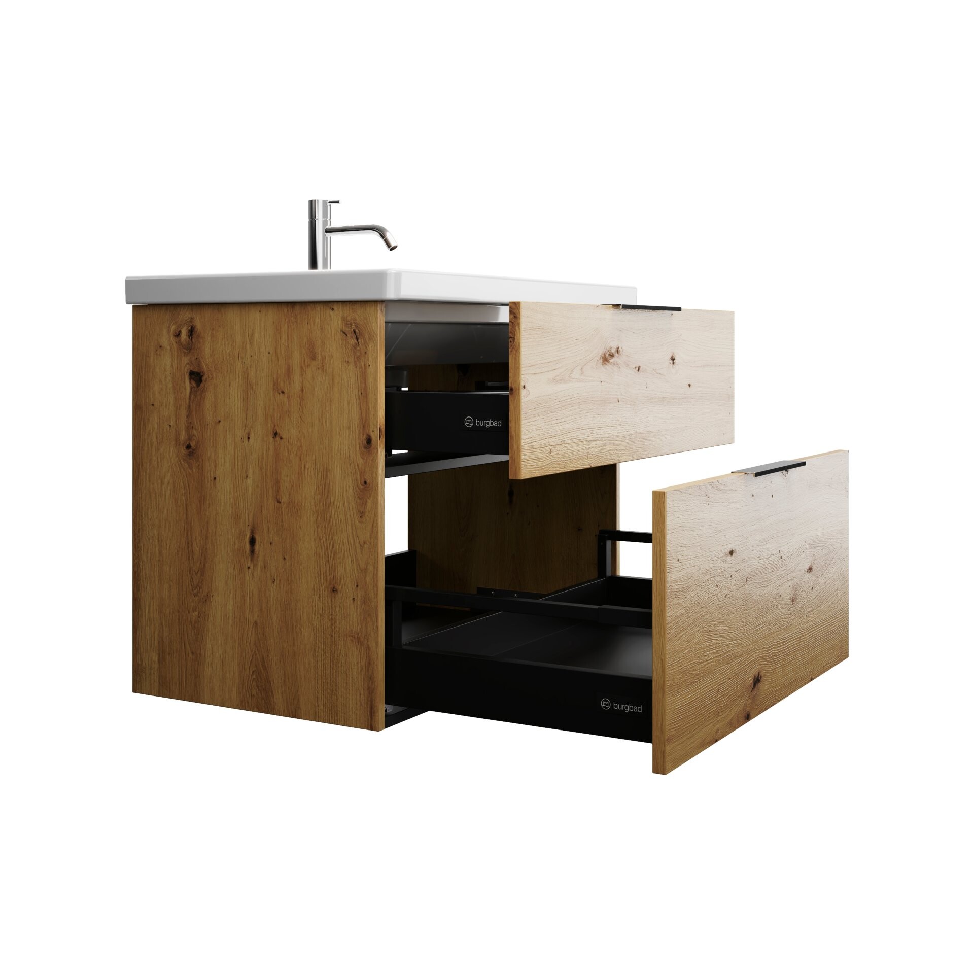 Burgbad EQIO Waschbecken mit Unterschrank 83 cm breit, Braun, Waschbecken Keramik Weiß