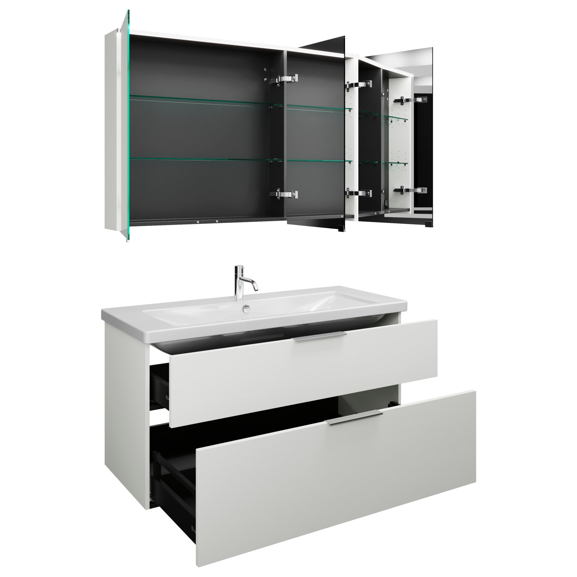 Burgbad EQIO Waschtisch Set mit Spiegelschrank 123 cm breit, Weiß Hochglanz, Waschbecken Keramik Weiß, 3-türig