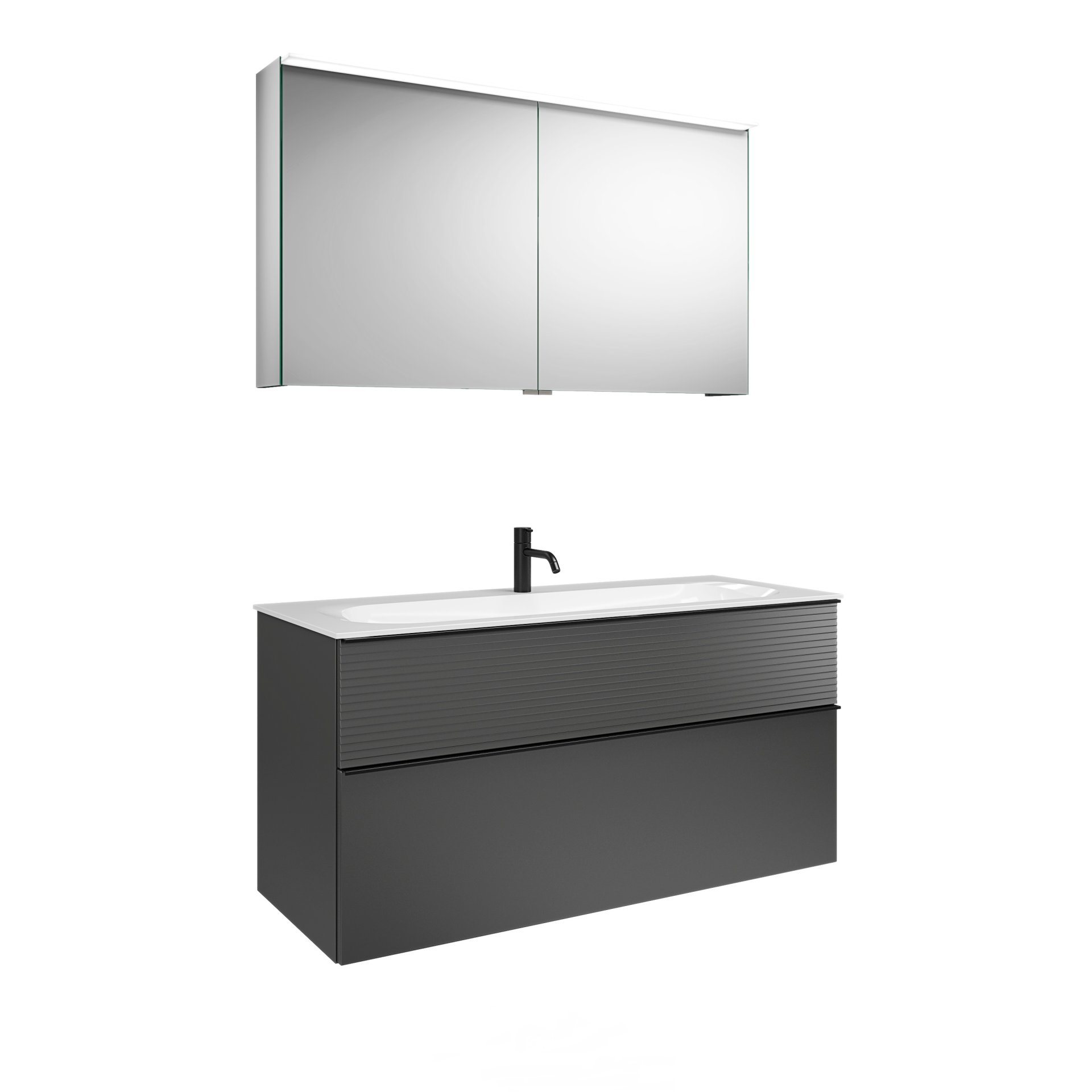 Burgbad FIUMO Waschtisch Set mit Spiegelschrank 122 cm breit, Anthrazit, Waschbecken Gussmarmor Weiß