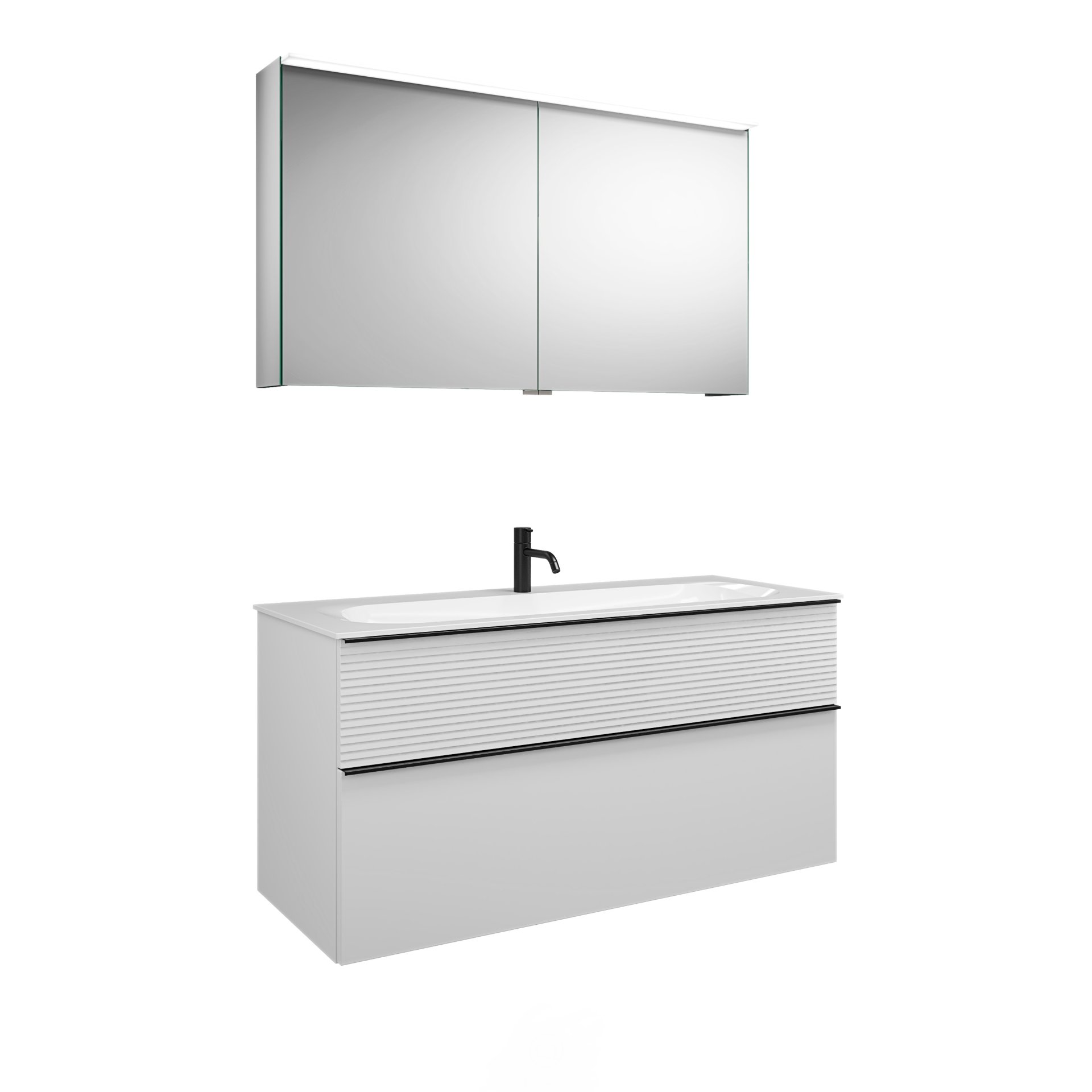 Burgbad FIUMO Waschtisch Set mit Spiegelschrank 122 cm breit, Weiß, Waschbecken Gussmarmor Weiß