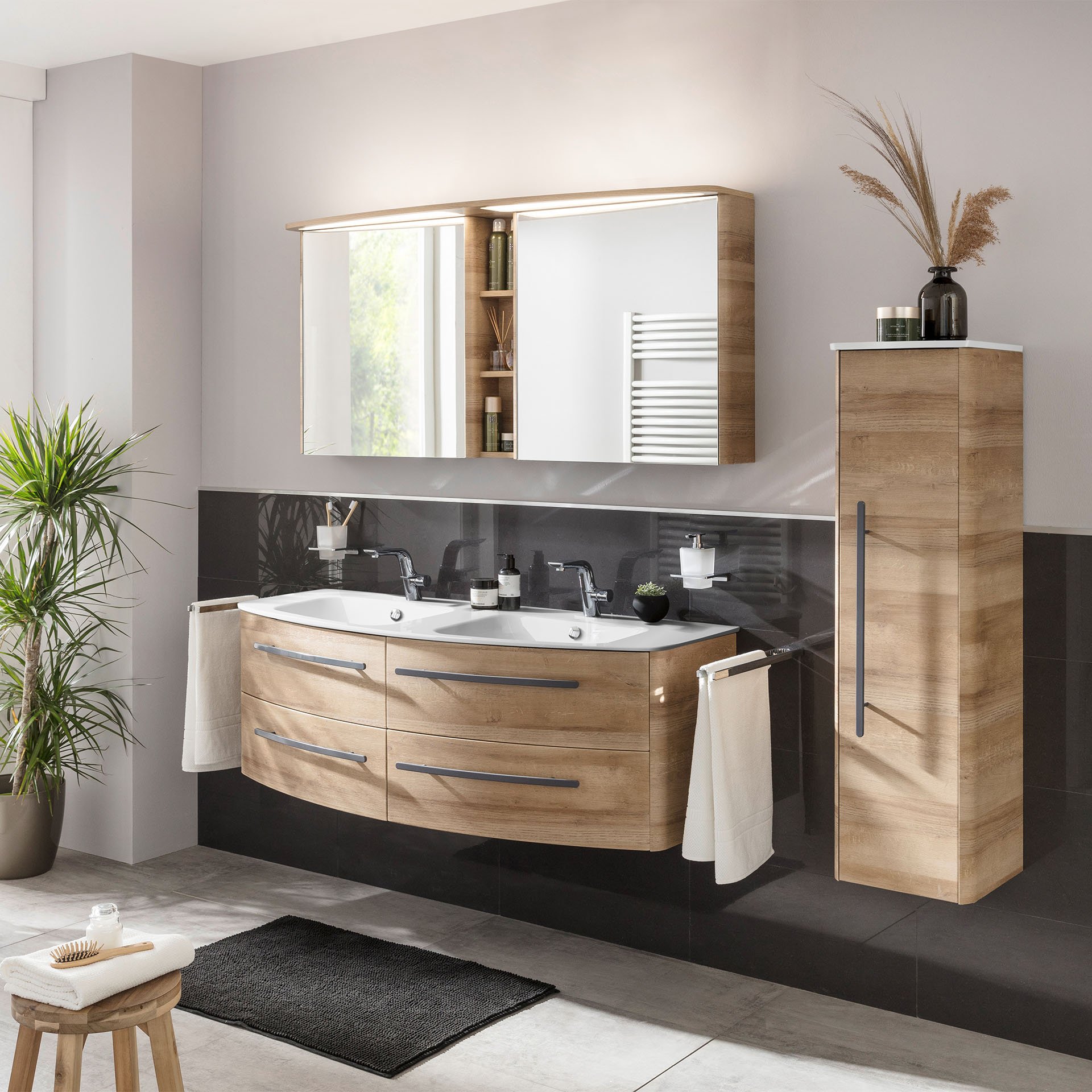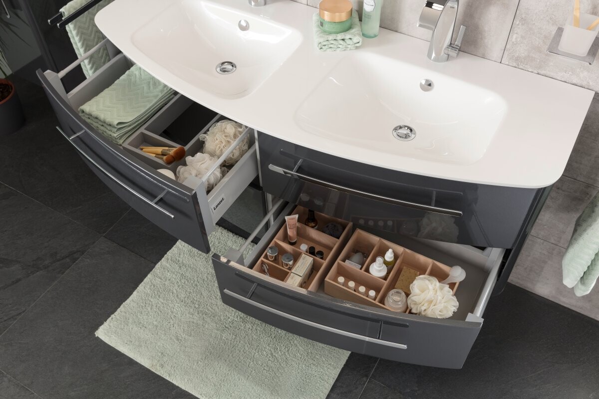 Lass Dich von der Schönheit und Funktionalität des 138 cm breiten weißen Doppel-Waschbeckens aus der Serie CLASSICO von Lanzet überzeugen. Dieser außergewöhnliche Waschtisch begeistert durch seine asymmetrische Form und verleiht Deinem Badezimmer einen Hauch von Luxus. Ablageflächen befinden sich links, rechts und mittig, Hier kannst Du Deine elektrische Zahnbürste, Deinen Seifenspender oder andere Badaccessoires für den täglichen Gebrauch platzieren. Die Hahnlochbohrungen ermöglichen Dir eine einfache Installation Deiner Wunscharmatur. Waschbecken aus Gussmarmor überzeugen durch ihre Resistenz gegen Chemikalien und Temperaturschwankungen. Dadurch ist Langlebigkeit garantiert. Das moderne CLASSICO Doppel-Waschbecken Mineralguss weiß passt hervorragend auf die Waschtischunterschränke der Serie CLASSICO in fünf unterschiedlichen Designvarianten. Lass Deiner Individualität freien Raum. Seit mehr als 150 Jahren produziert die Firma Lanzet Badmöbel in Deutschland. Das spricht für Kompetenz und Erfahrung auf hohem Niveau. Qualität Made in Germany - von engagierten und fachkundigen Mitarbeitern entwickelt und hergestellt.