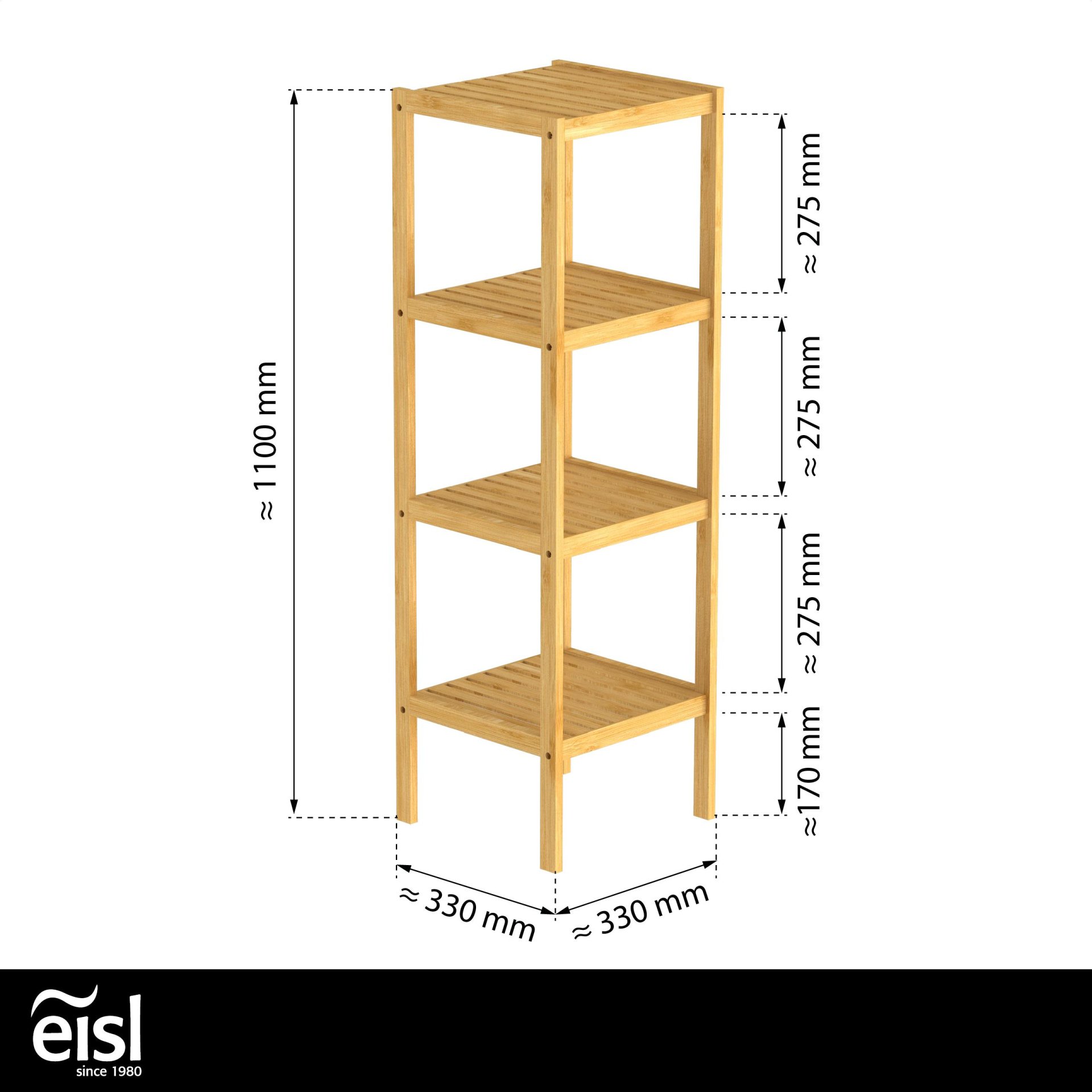 Eisl BAMBUS Regal 34 cm breit, Braun, mit 4 Fächern