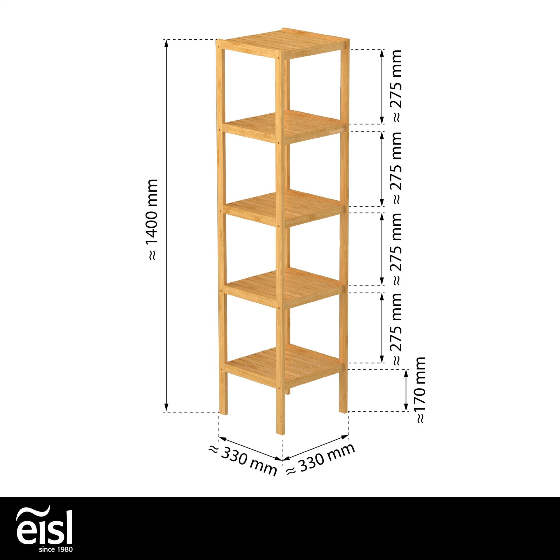 Eisl BAMBUS Regal 34 cm breit, Braun, mit 5 Fächern