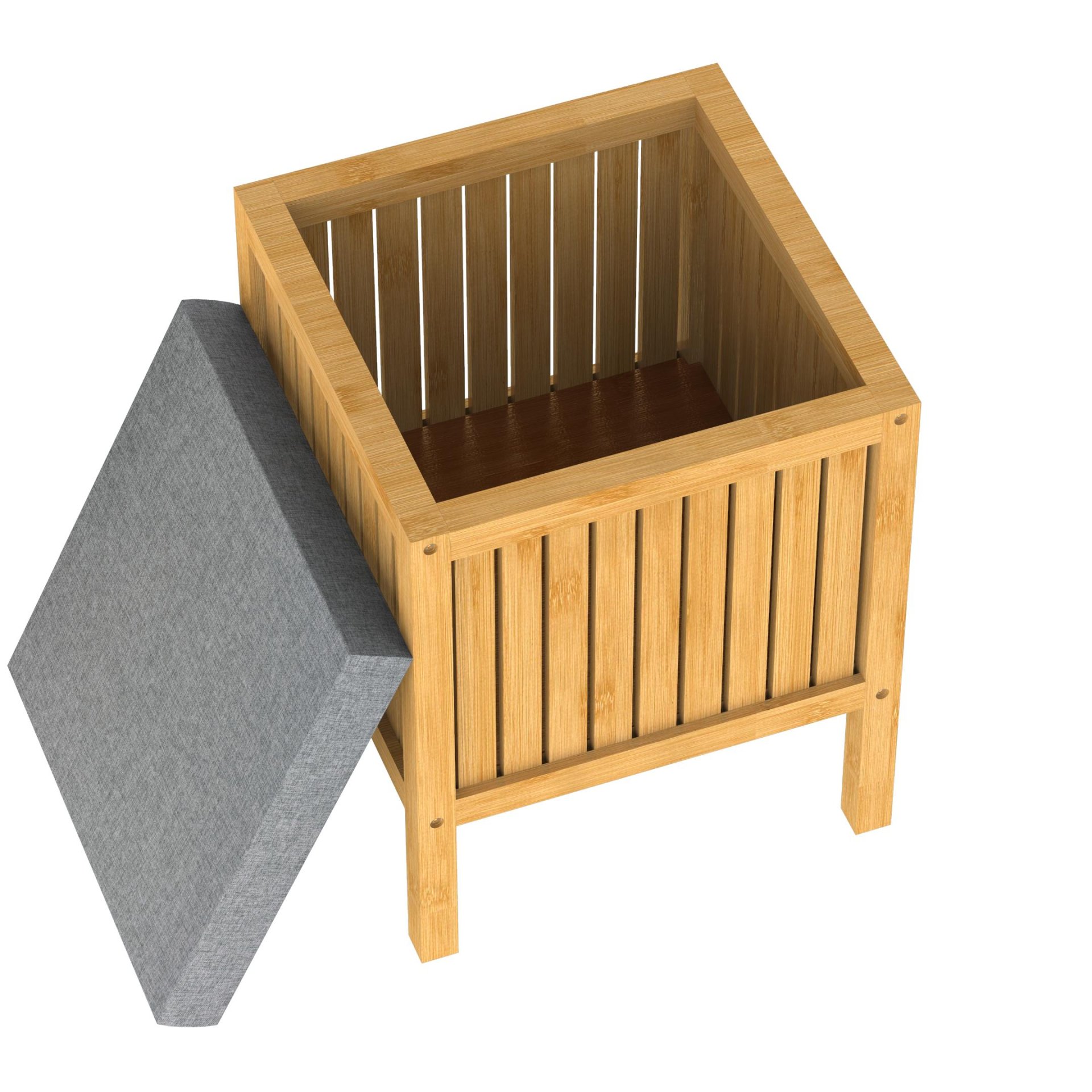 Eisl BAMBUS Wäschesammler 39 cm breit, Braun, mit Sitzkissen Grau