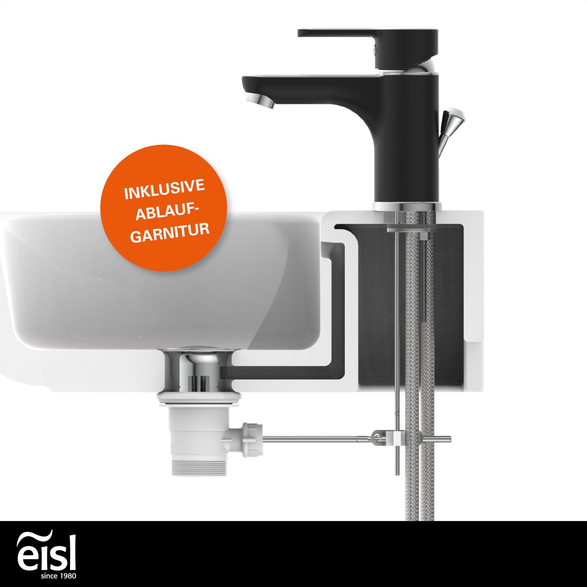 - Vollständiges Montageset mit hochwertigen, flexiblen Anschlussschläuchen an das Hauswassersystem