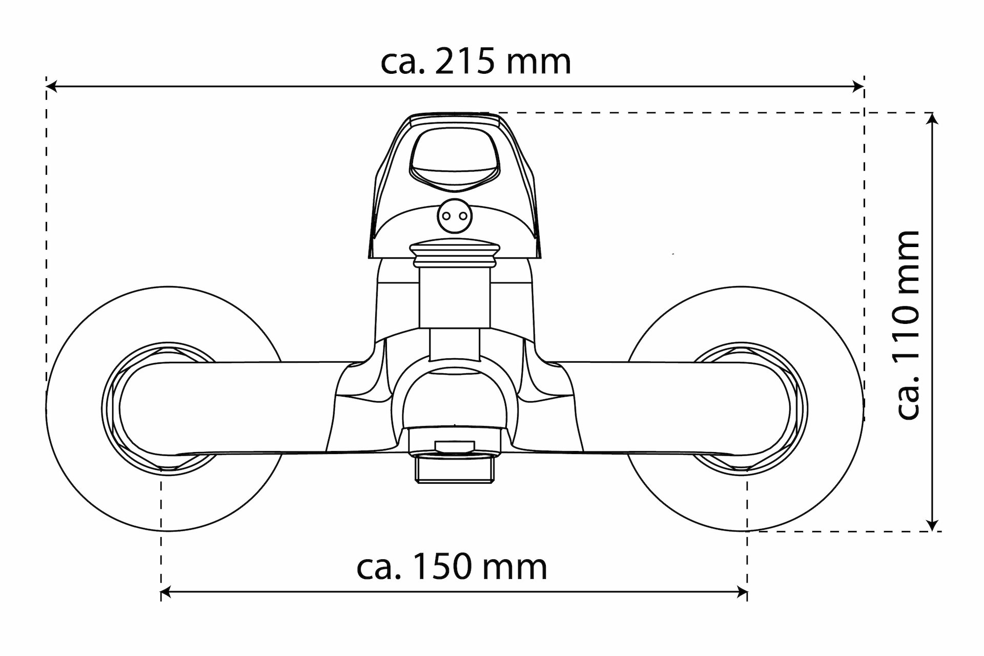 - Ausladung: Die Länge, die der Auslauf von der Mitte des Armaturenkörpers in das Becken hineinragt beträgt 155 mm.
