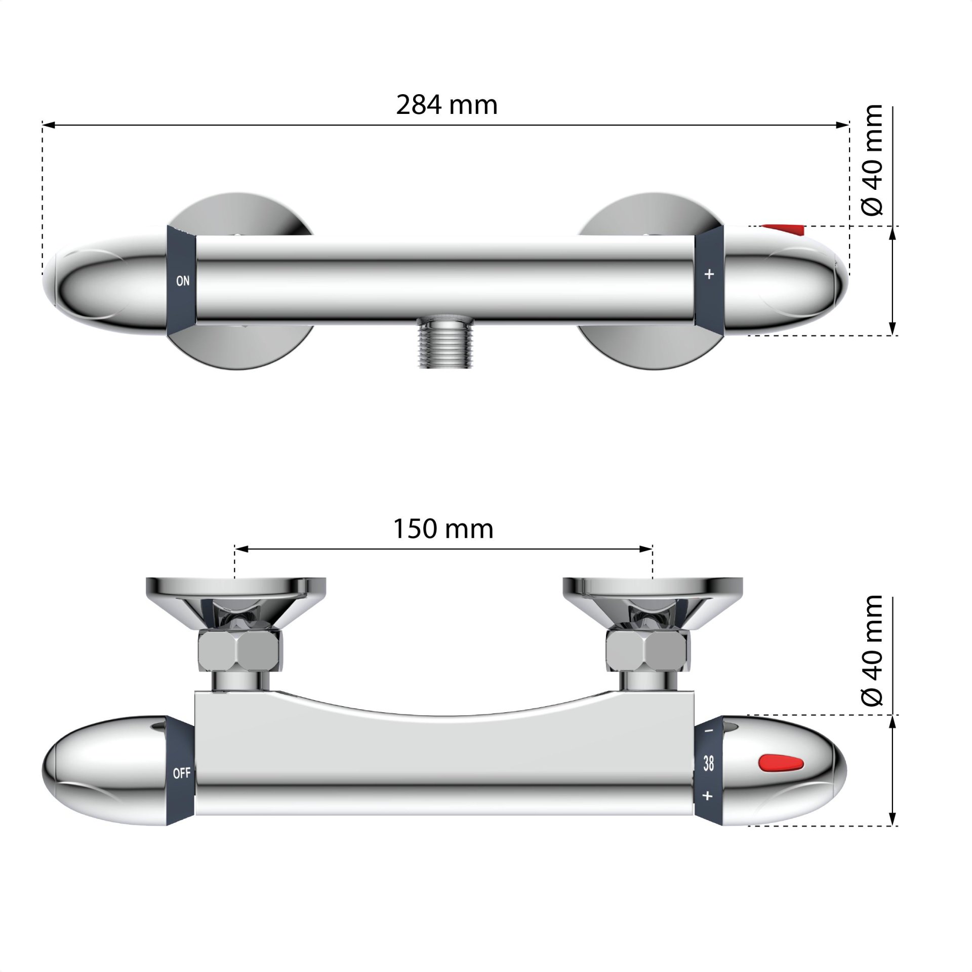 - Thermostatarmatur mit Sicherheitssperre bei 38°C minimiert das Risiko für Verbrühungen