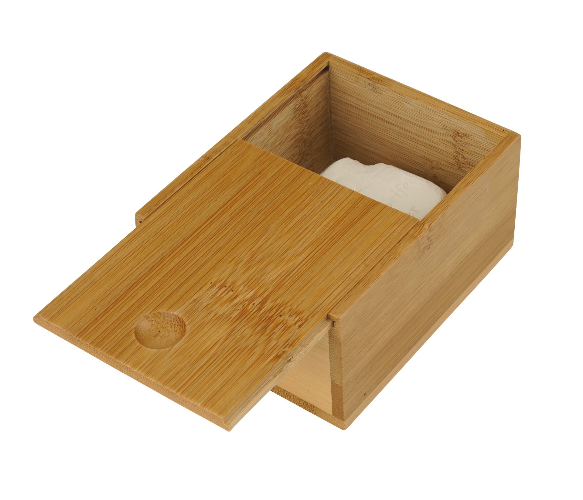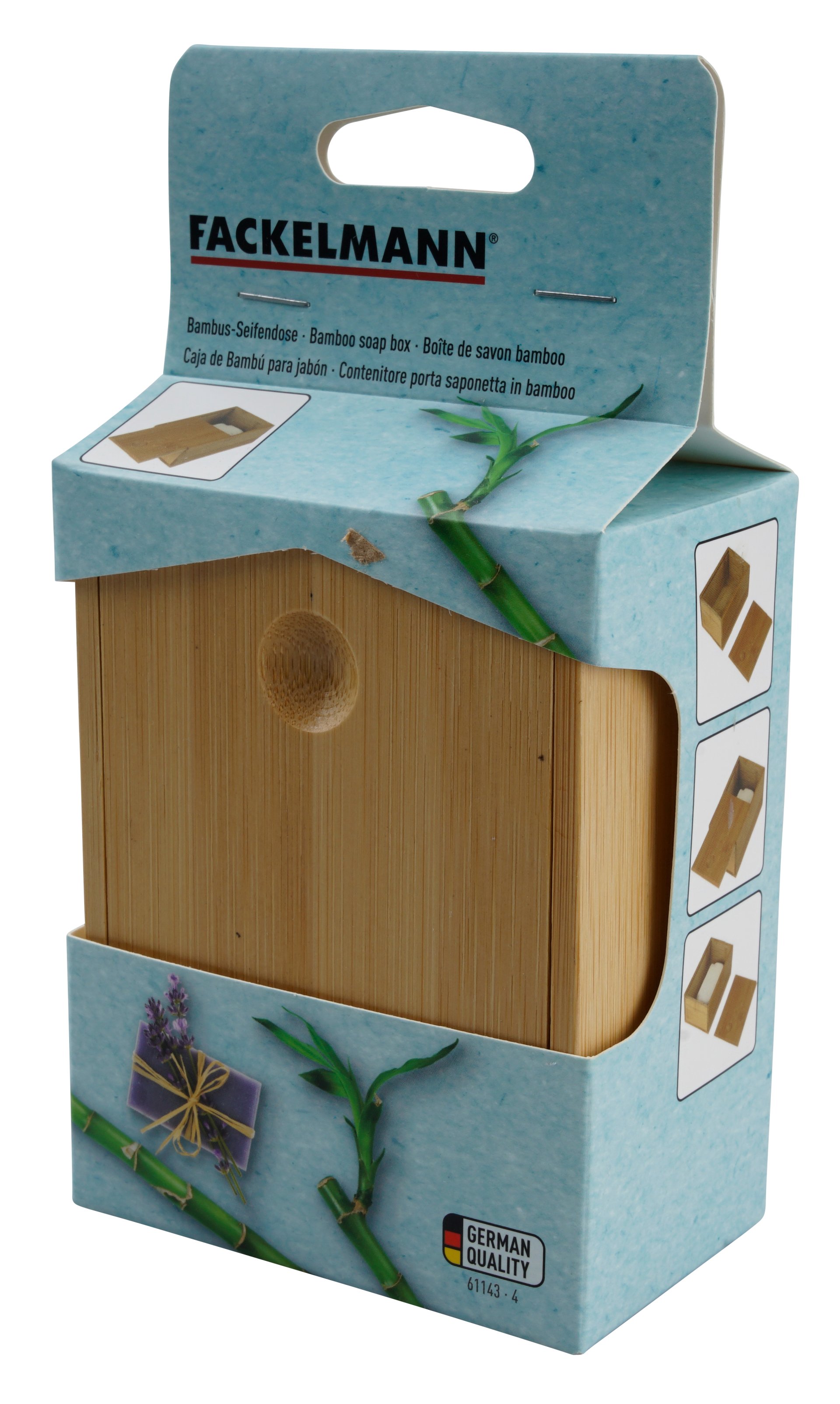 Die Bambus-Aufbewahrungsbox mit Schiebdeckel von der Firma Fackelmann ist ein attraktives Accessoire auf oder neben Deinem Waschbecken. Hier lässt sich Deine Seife sicher und schmierfrei verstauen. Und falls Du mal unterwegs bist, dann hast Du Deine Lieblingsseife immer dabei. Bambus ist ein schnell nachwachsender Rohstoff und ein Plus in Sachen Nachhaltigkeit. Das Material ist robust und wenig kratzanfällig. Du kannst diese formschöne Box im Bad oder in der Küche einsetzen. Mit einer schönen Schleife versehen ist sie ein außergewöhnliches Präsent für liebe Freunde.