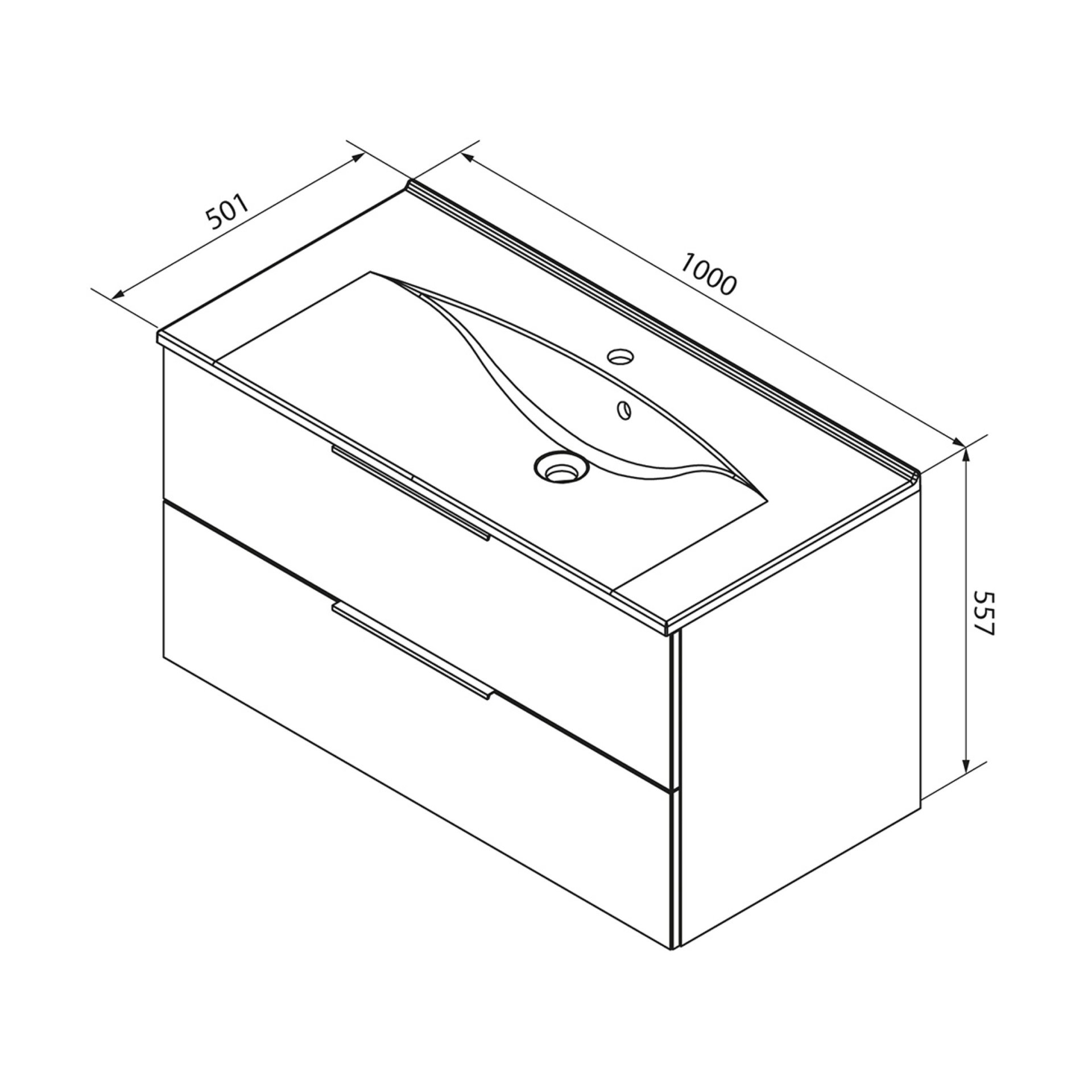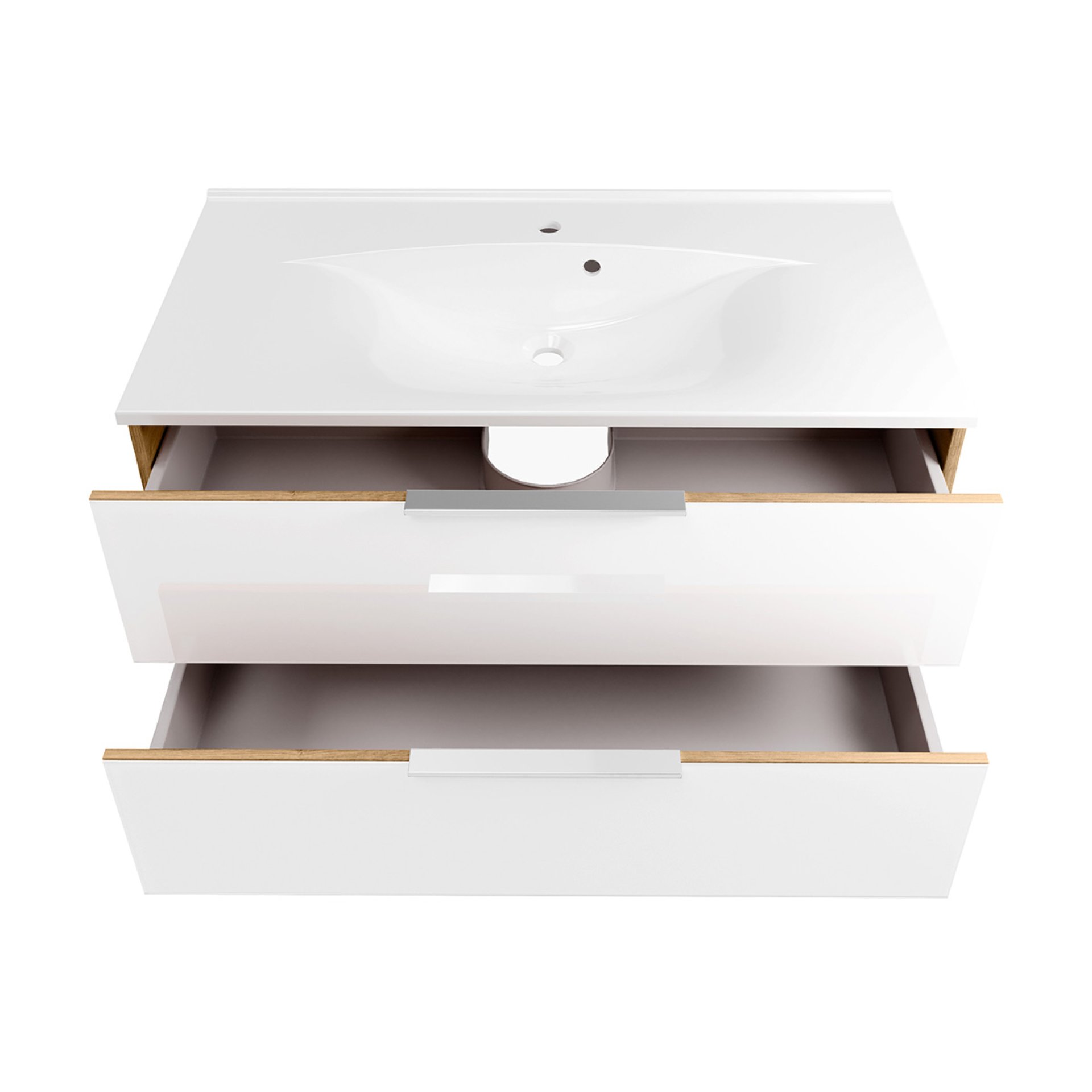 2. Waschtischunterschrank Asteiche/Glas Weiß (Art.-Nr. 84023)